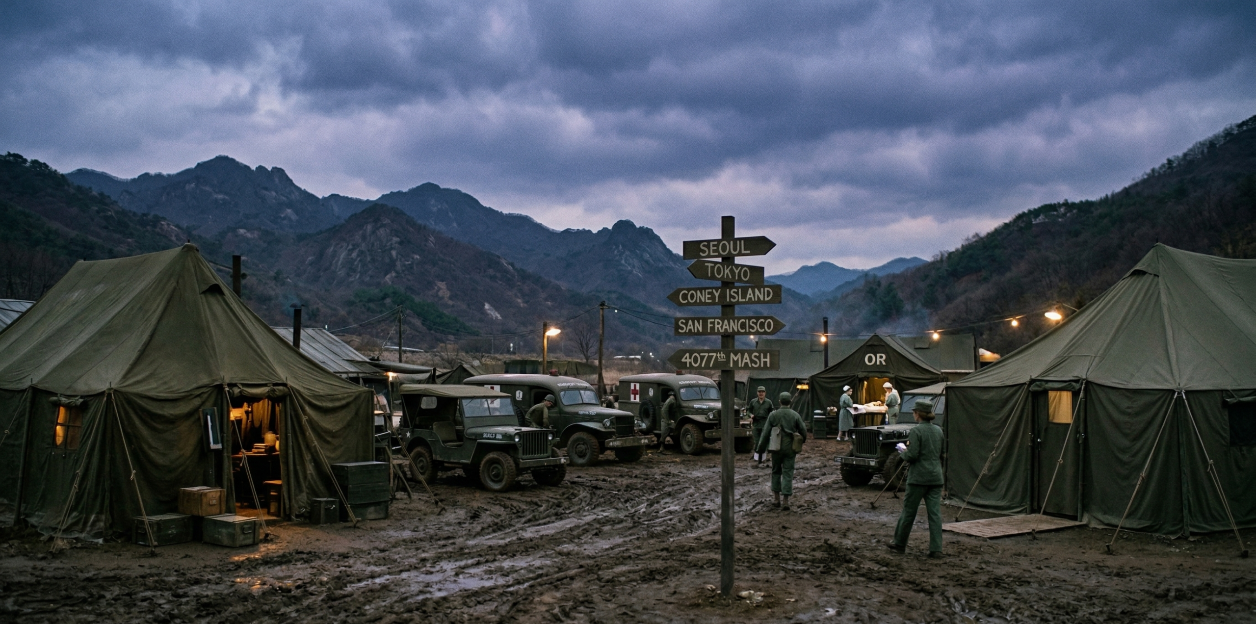 Seconds later, the backup generators kicked in, bathing the room in a harsh, flickering yellow light. The moment of vulnerability was gone, sealed back up as quickly as the corporal’s chest cavity they were working on. Margaret immediately adjusted her mask, her posture snapping back to perfect, rigid Regular Army standards. Hawkeye picked up his scalpel, his eyes once again masked by the cynical humor he used to survive the meat grinder of Uijeongbu.