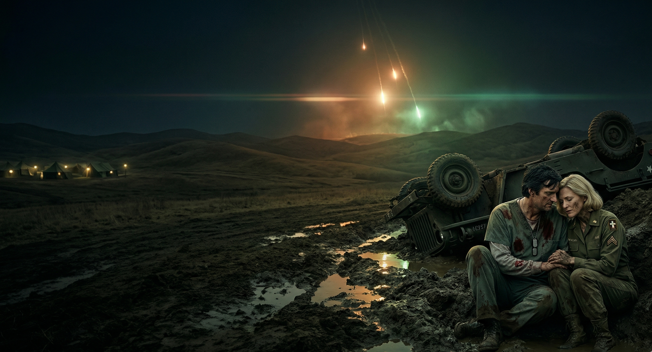 They scrambled out of the jeep and threw themselves into a deep, freezing ditch just as a shell obliterated the road mere yards ahead. Mud, rocks, and shrapnel rained down on them. Instinctively, Hawkeye threw his body over Margaret’s, pressing them both deep into the freezing earth.