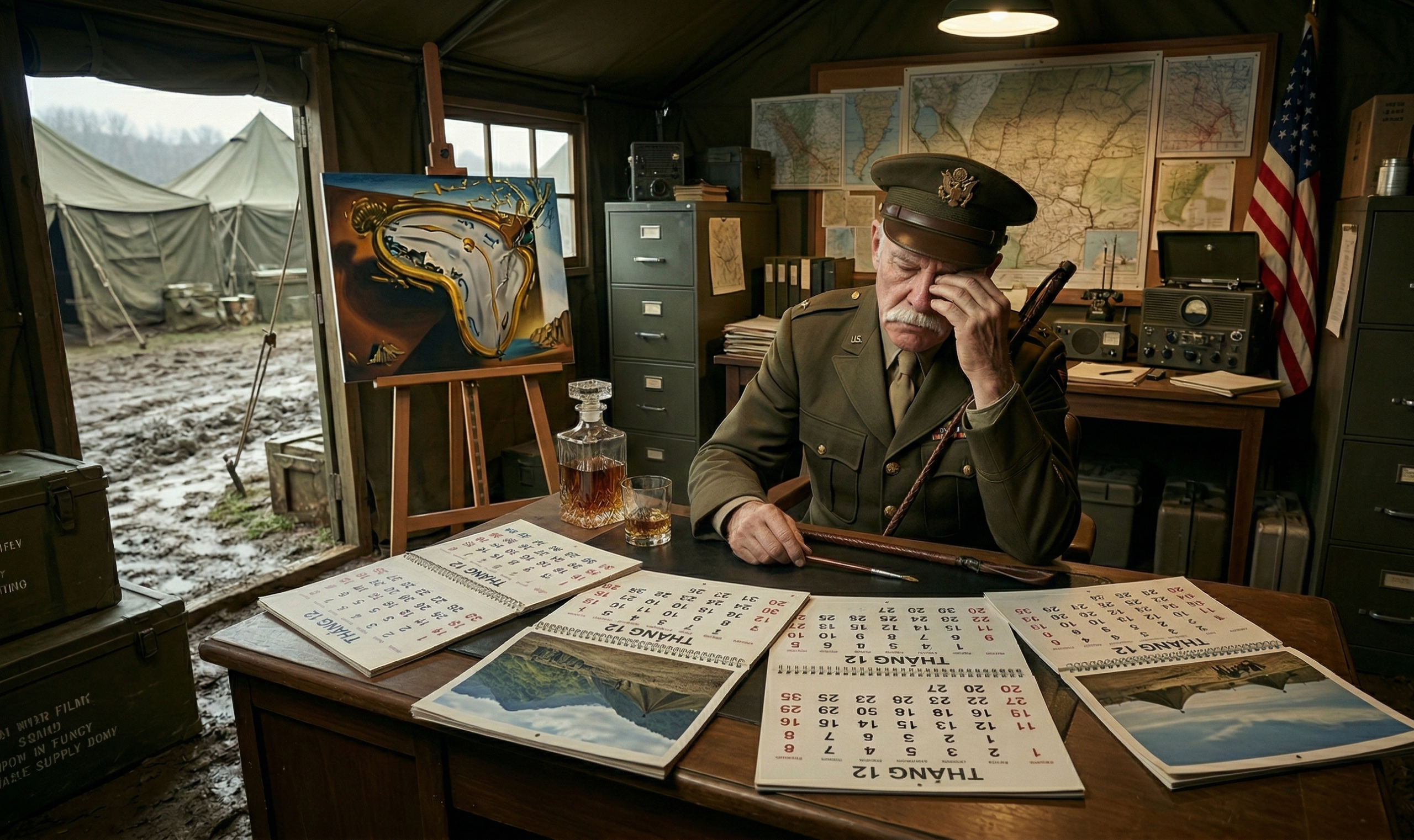 “Three years. Thirty-six months. And yet, this camp is preparing to celebrate its fourth Christmas. The math doesn’t work, Colonel! The Army has shoved 48 months of misery into a 36-month bag. We are living in a temporal paradox!”