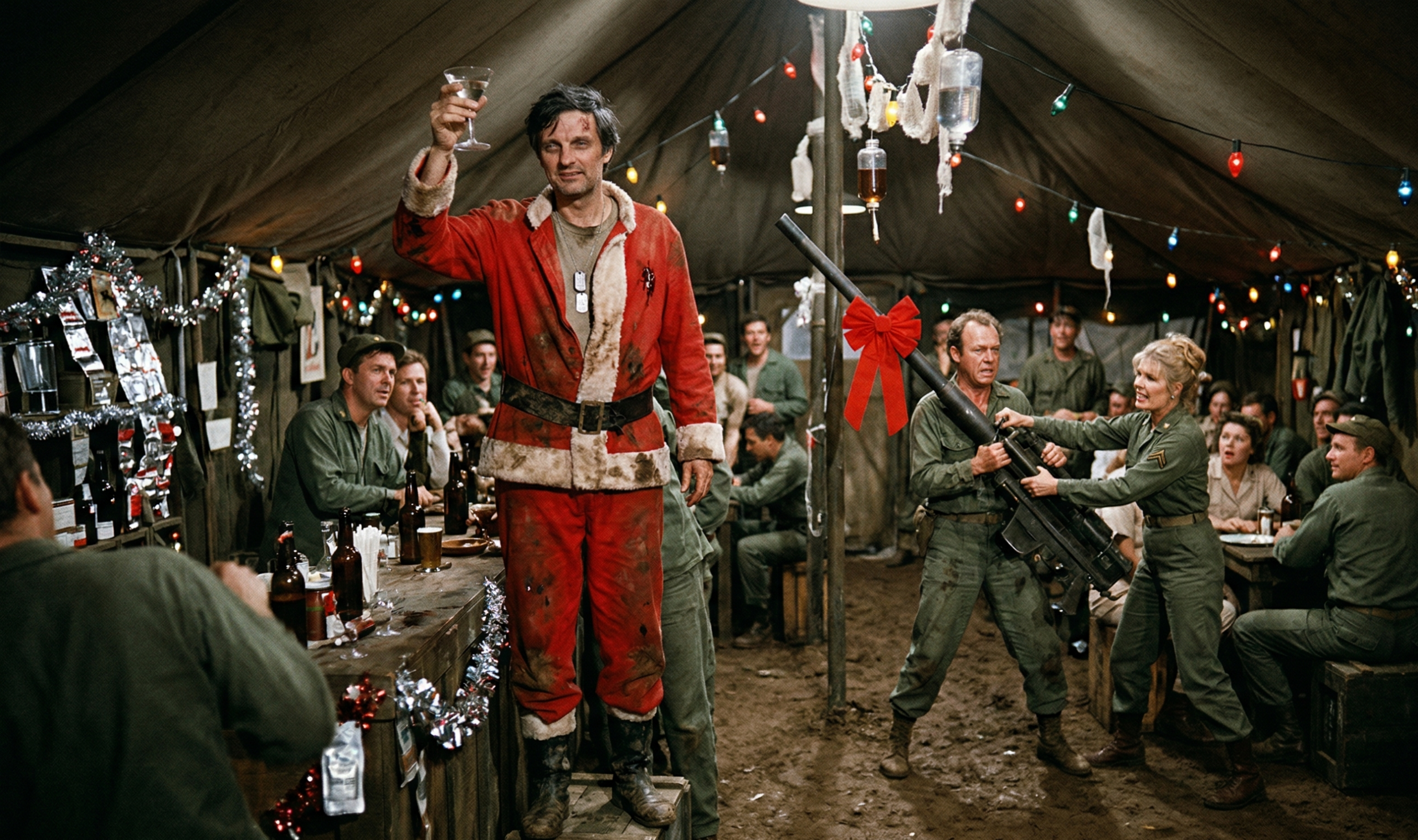 The Officer’s Club, affectionately known as the O-Club, smelled of stale beer, pine needles, and the distinct metallic tang of iodine. It was the 4077th’s fourth Christmas Eve in three years, and the collective sanity of the camp was hanging by a single, frayed suture.
