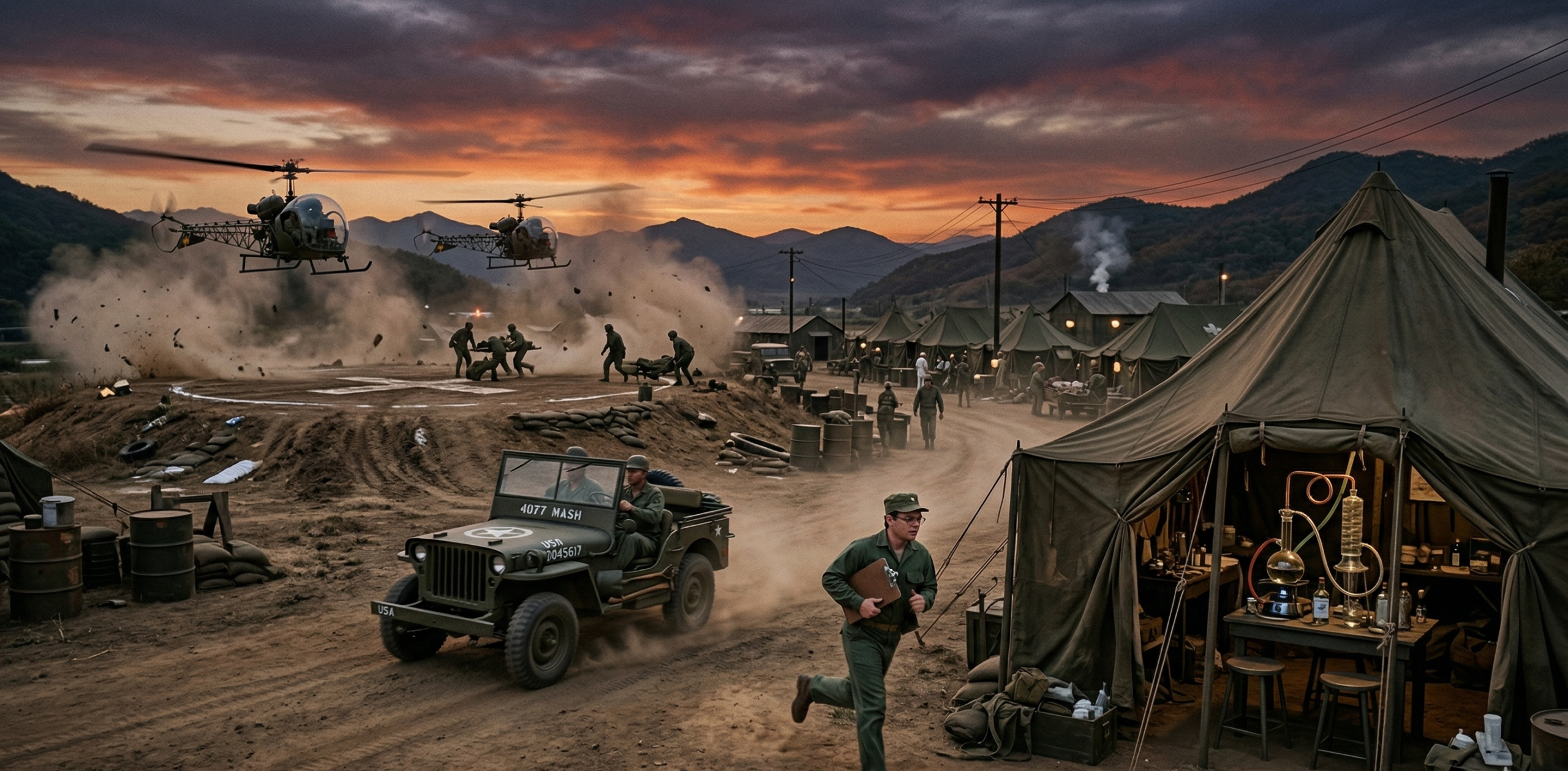 The air inside the Operating Room of the 4077th Mobile Army Surgical Hospital was thick with the scent of ether, iodine, and exhaust fumes from the generators outside. It was a smell that clung to the skin, a permanent cologne that Hawkeye Pierce couldn’t scrub off, no matter how much lye soap he used in the officers’ shower.