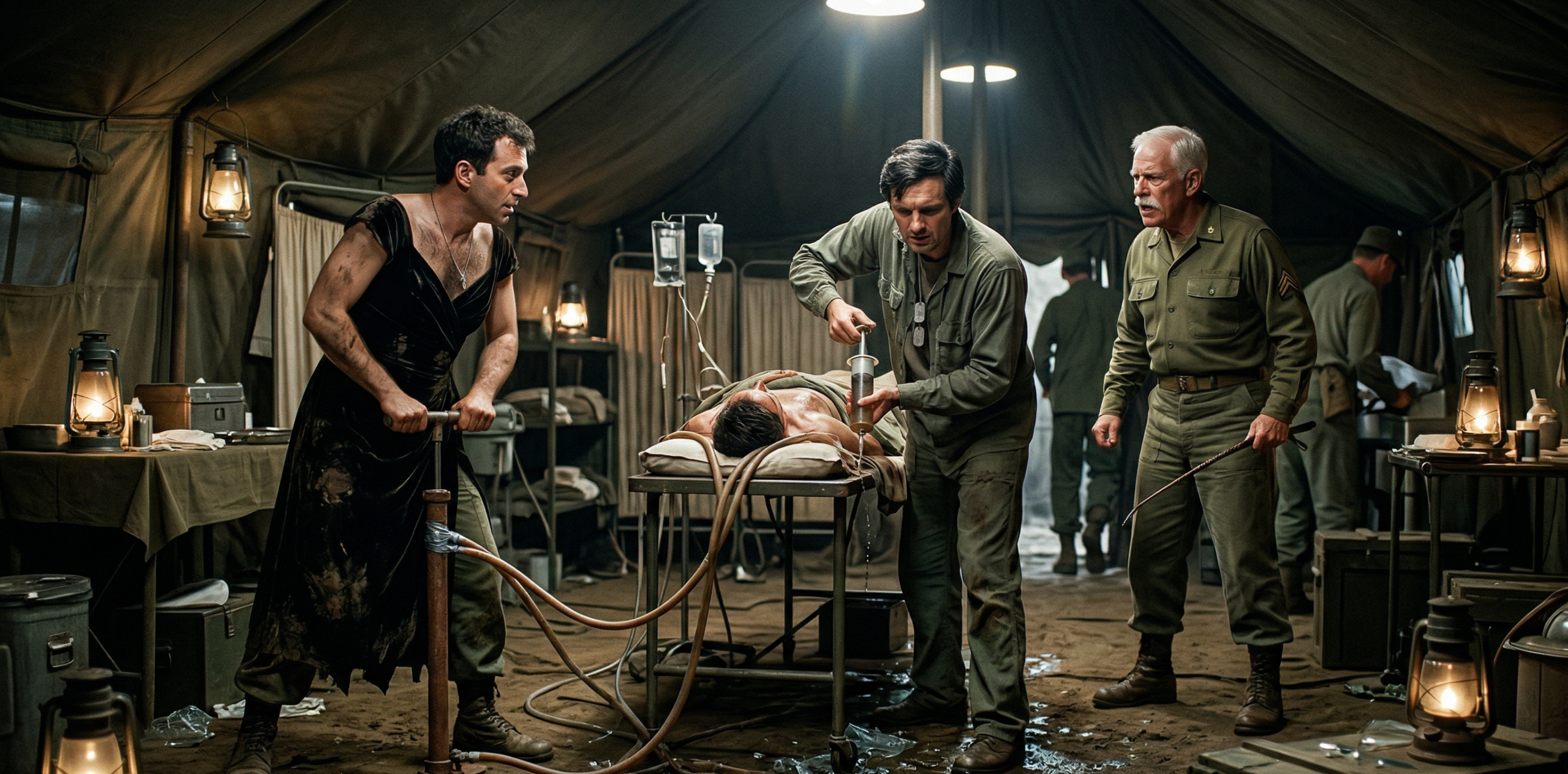 “Pierce, we are operating in a coal mine!” Major Frank Burns whined from the next table. He was holding a pair of forceps like they were a venomous snake. “This is completely against regulations. Paragraph four, subsection B of the surgical manual clearly states—”