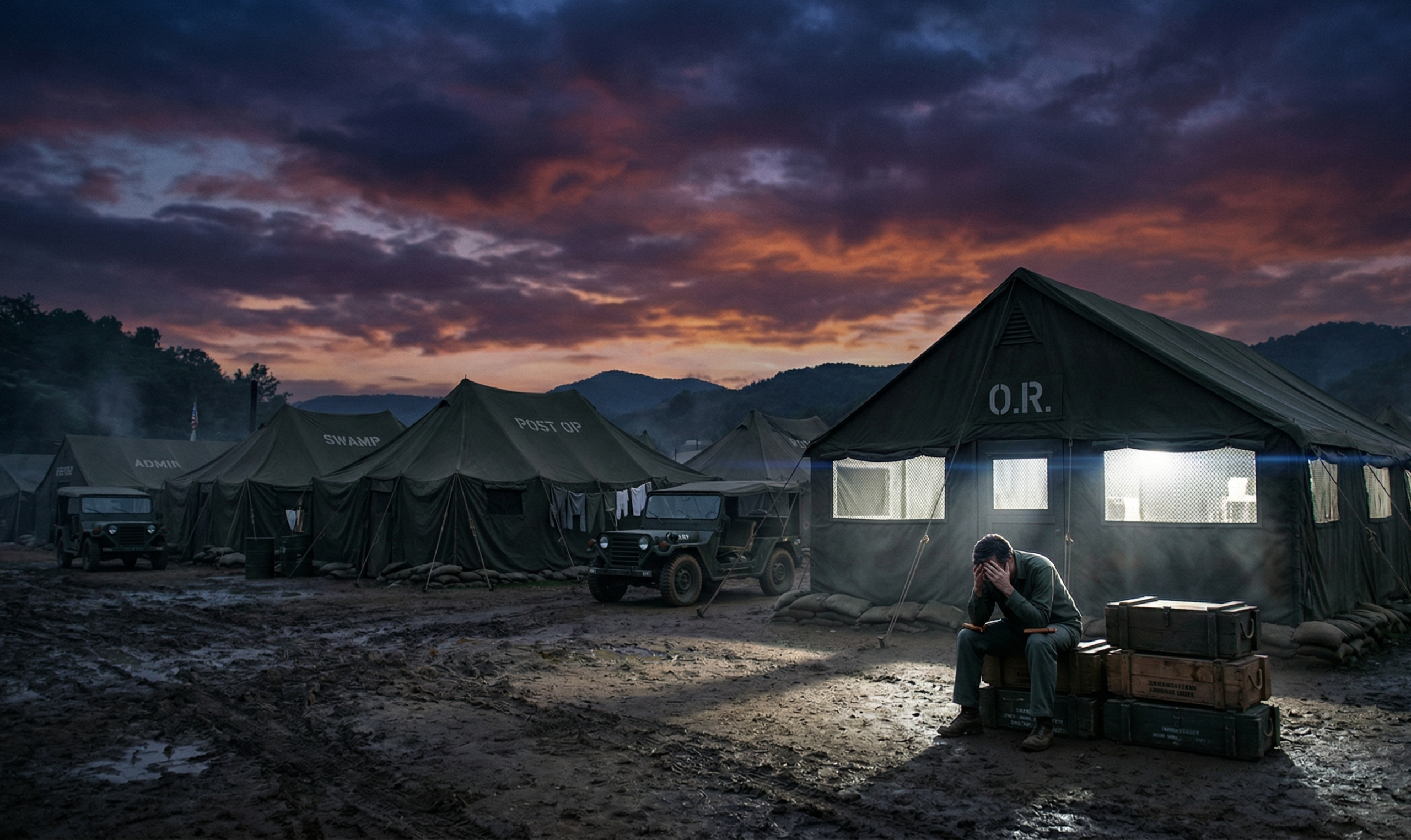 “B.J. is operating in the Swamp! Frank is still nursing his nose and claiming a concussion!” Hawkeye yelled back, sweat pouring down his face. He looked over his shoulder at the priest, his eyes wide and desperate. “Padre, listen to me! There is no one else! If you don’t stop that bleeding right now, she won’t make it five minutes!”