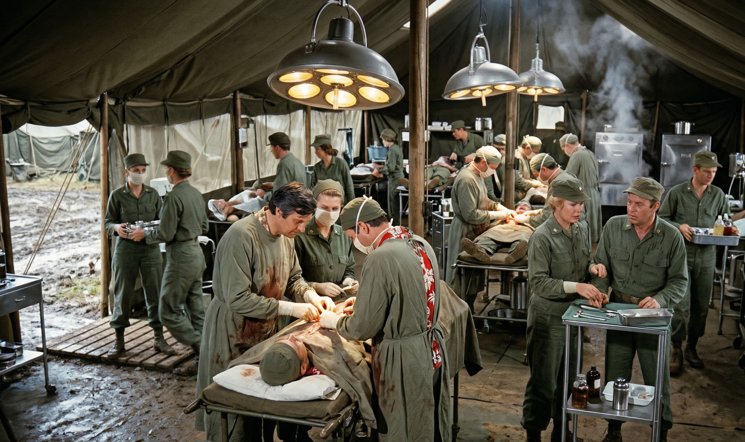 Hawkeye froze. In the 4077th Mobile Army Surgical Hospital, freezing was a luxury no one could afford. Time was measured in pints of blood, and the young private on his table was rapidly going bankrupt. Yet, Hawkeye stared into the open abdominal cavity, his scalpel hovering in mid-air.