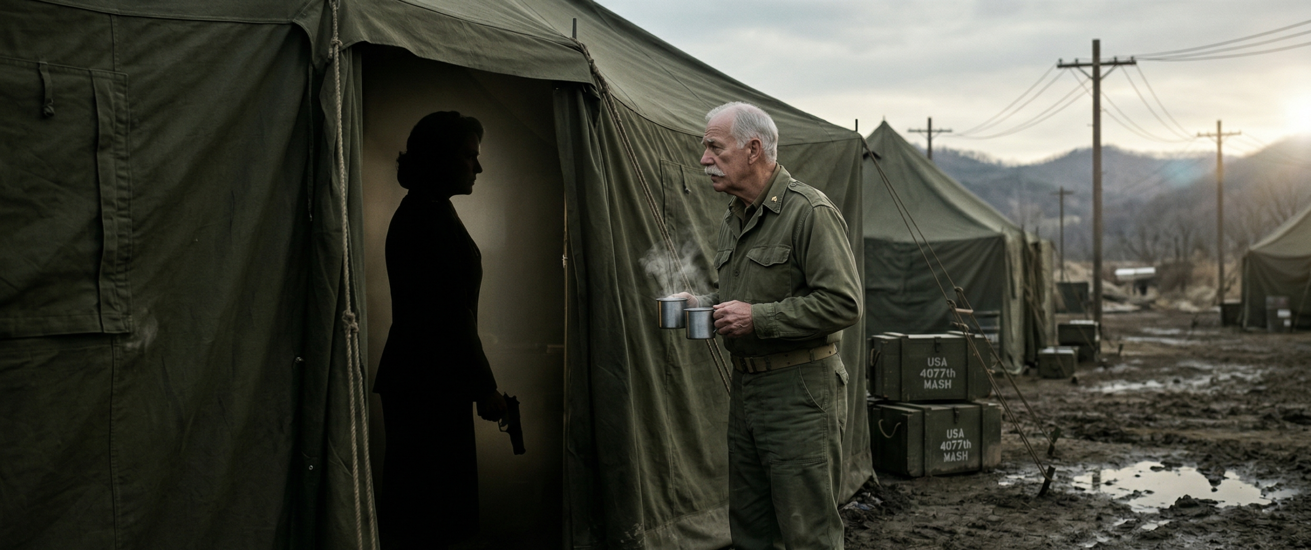 “Major Houlihan?” Potter called out, his voice gentle but firm. “It’s Colonel Potter. I brought you some coffee. I figured anyone guarding the gauze this late at night must be parched.”