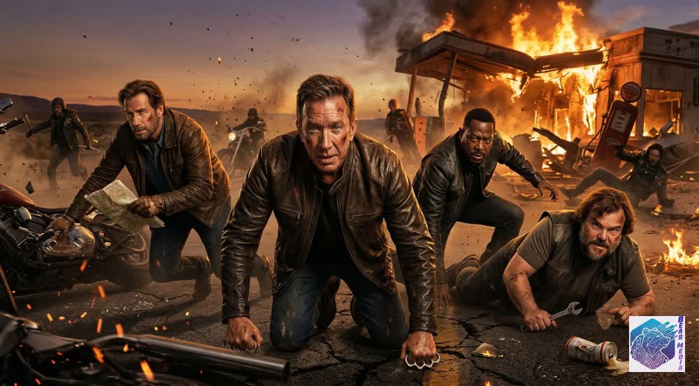 The desert asphalt hums with a deafening, mechanical vibration. It drowns out the crackle of a burning gas station and the desperate roar of heavy V-twin engines tearing across the desolate highway. The open road has been twisted, transformed from a path of weekend freedom into a blazing gauntlet of survival that darkens the once-peaceful Monument Valley. Under a sky thick with exhaust and the terrifying silhouette of towering sandstone buttes, the mundane lives they built collapse… The men who traded their wild youth for quiet suburbs are forced to step out of the shadows of middle age, gripping their handlebars not to escape, but to survive.