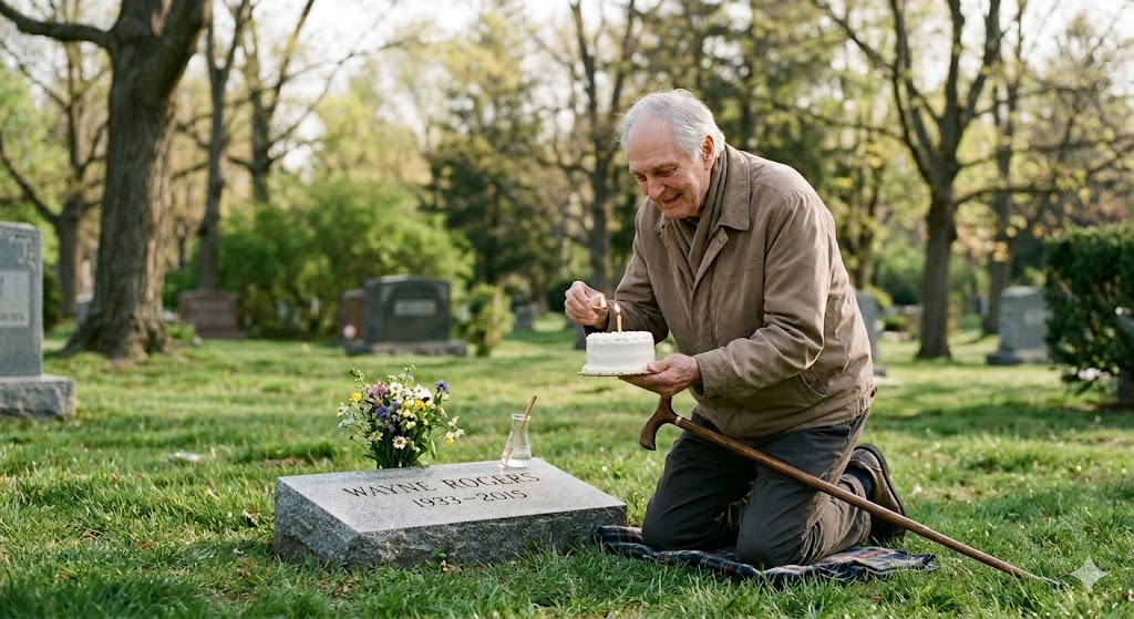 “Okay, buddy,” he said softly. “I kept my promise. I came for your birthday. Save me a chair up there, will you? One day, we’ll run lines again. No cameras. No notes. Just you and me.”