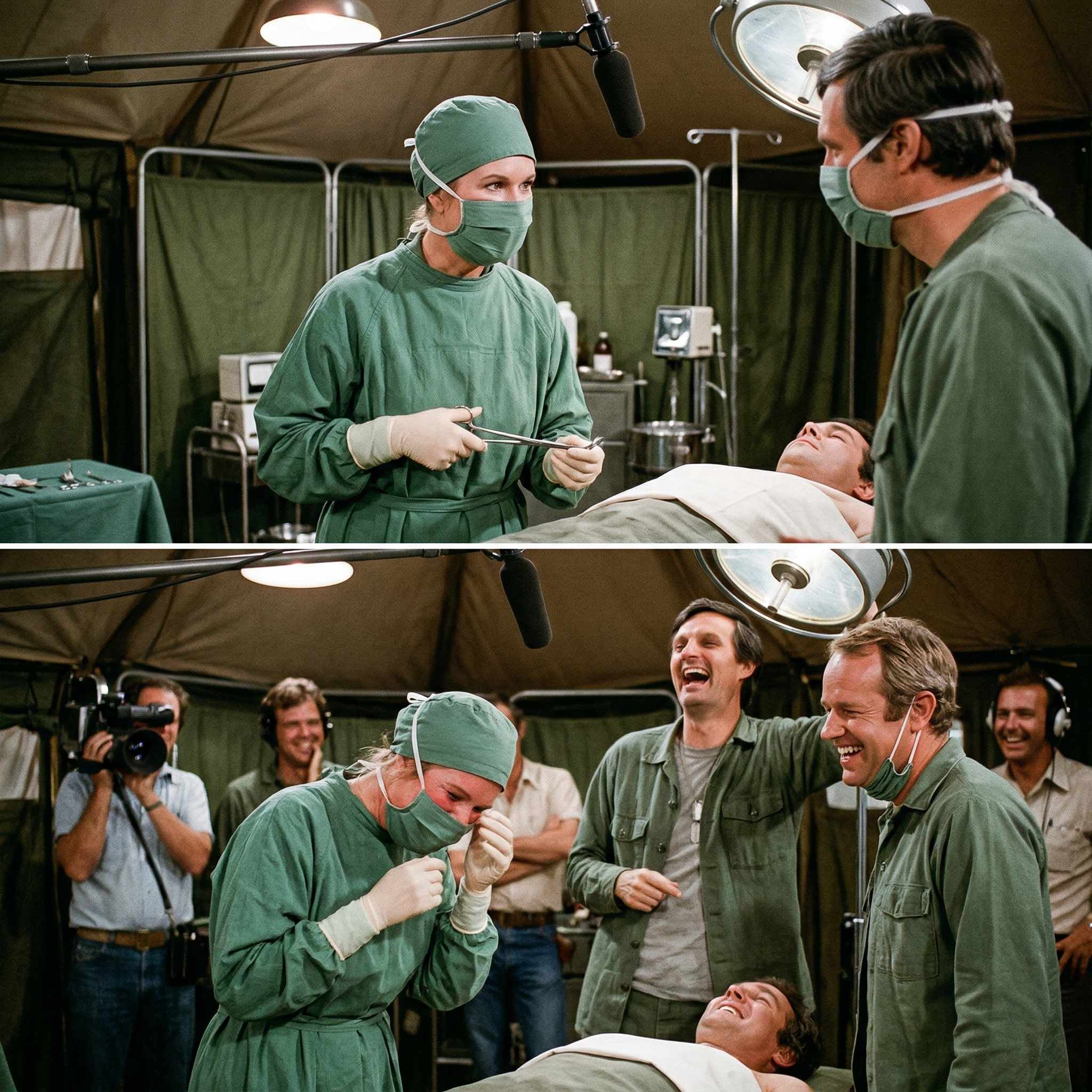 The “dead” patient on the table—this poor young extra who had been lying perfectly still for hours—started to bounce. He was shaking so hard with laughter that the surgical tools on the tray beside him started rattling like a percussion section.