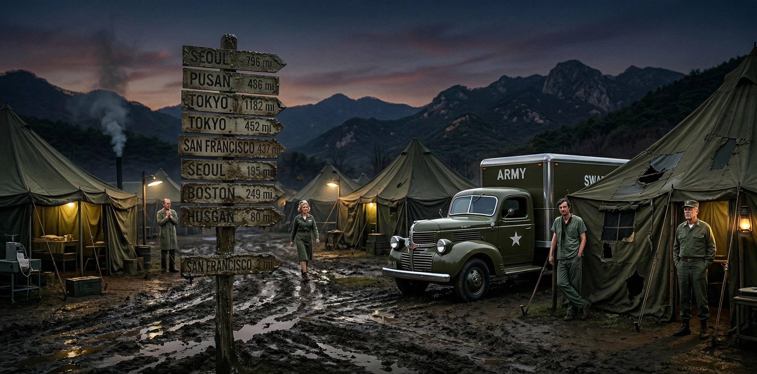 Major Elias Sterling, Army Signal Corps, had arrived the day before with two cameramen, a sound technician, and a smile so artificially bright it could have guided the choppers in without flares. He was here to shoot a documentary. The working title, which Hawkeye Pierce had discovered on a clipboard and read aloud over the PA system, was The Sunny Side of Surgery: American Angels in Korea.