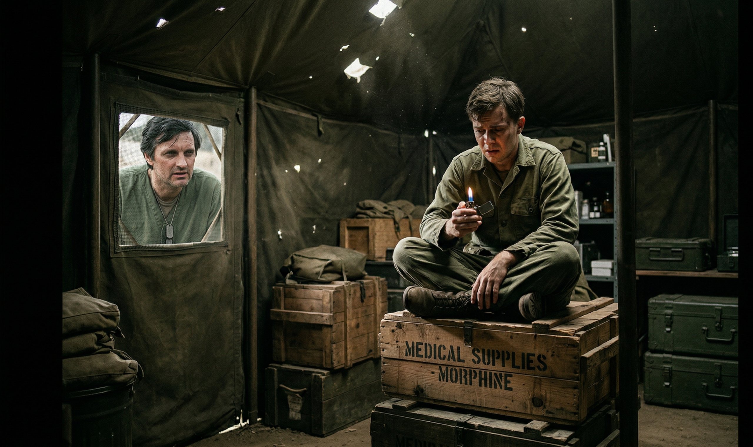 The sound of helicopter blades was a physical weight pressing down on the 4077th. Casualties were arriving, broken bodies of boys who were in high school just months ago. And right when they needed every ounce of painkiller the Army had begrudgingly supplied them, PFC Thomas “Jitters” Hayes was holding it hostage with a flick of his thumb.