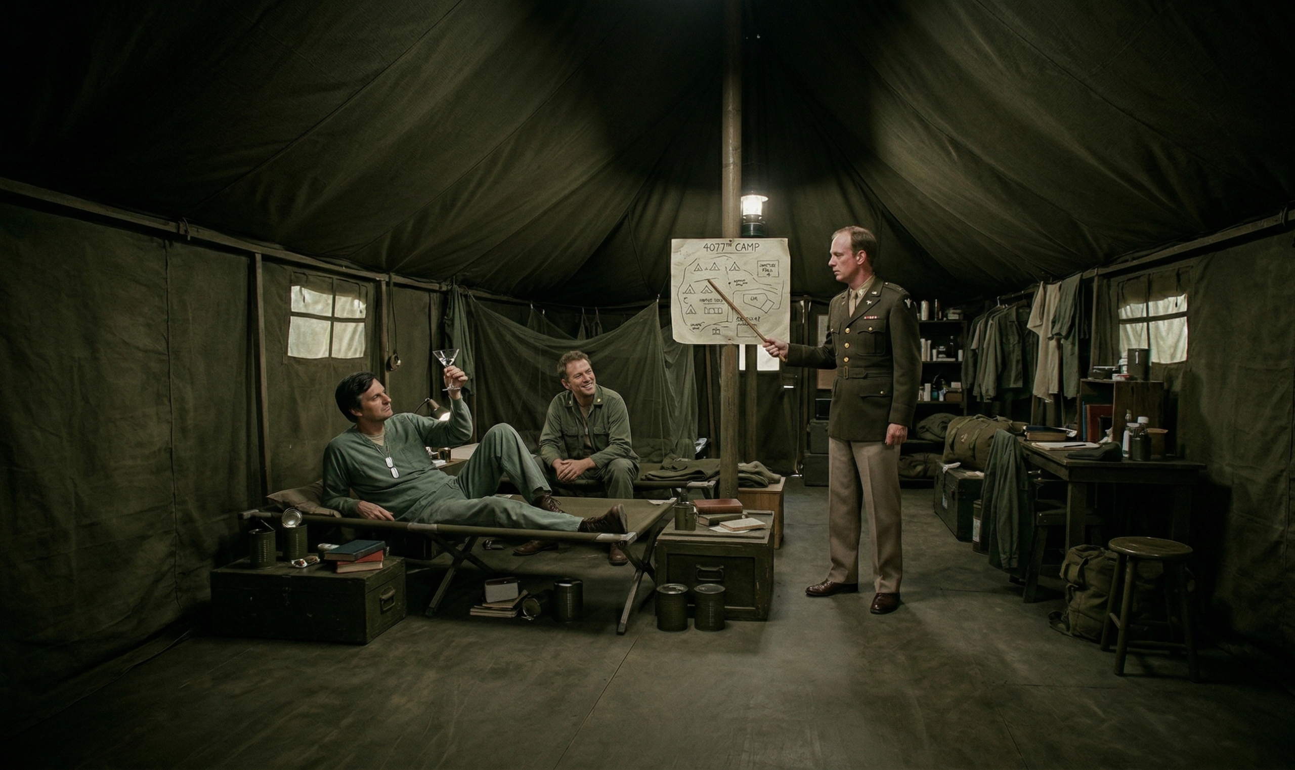 Inside the tent affectionately dubbed ‘The Swamp’, Captains Benjamin Franklin “Hawkeye” Pierce and B.J. Hunnicutt were currently engaged in a highly technical medical procedure: determining the exact vermouth-to-gin ratio required to temporarily erase the memory of the United States Army.