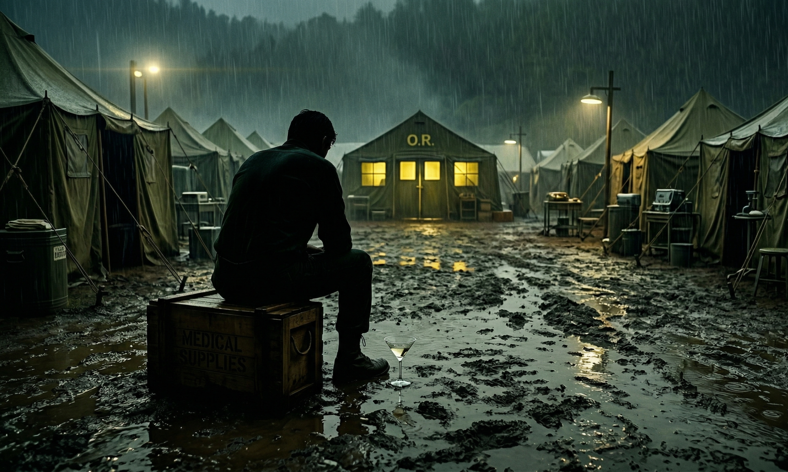 Before anyone could stop him, Hawkeye burst through the double doors of the O.R., running out into the freezing, muddy Korean night, leaving his patient, his team, and his sanity behind on the surgical floor.