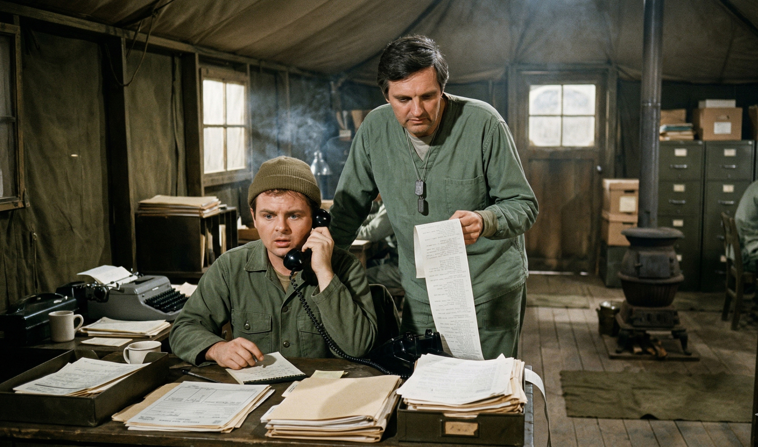 Hawkeye paced the length of Colonel Potter’s office, nursing a cup of coffee that tasted suspiciously like hot mud. Potter sat behind his desk, painting a rather depressing landscape of a dead tree, while Radar stood nervously by the filing cabinets, clutching a clipboard like a shield.