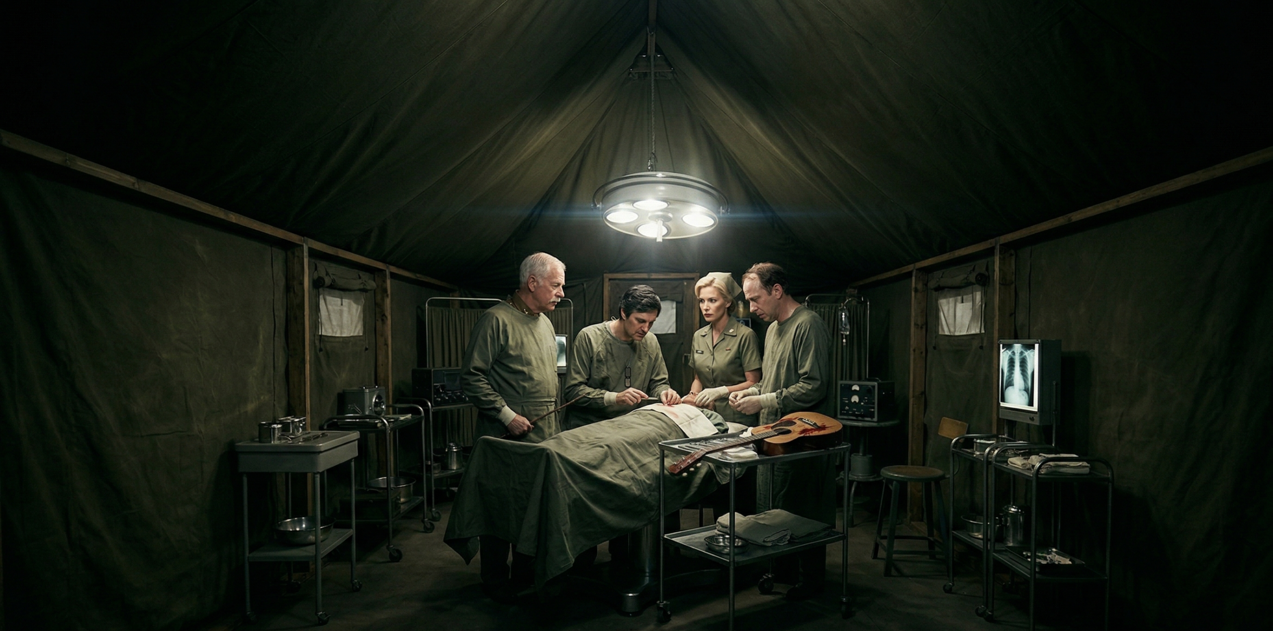 Hawkeye moved to the table, his eyes locked on the shattered guitar resting precariously on the soldier’s chest. “Someone get Les Paul’s lumber out of the sterile field before Frank tries to court-martial it for being out of uniform,” Hawkeye ordered.