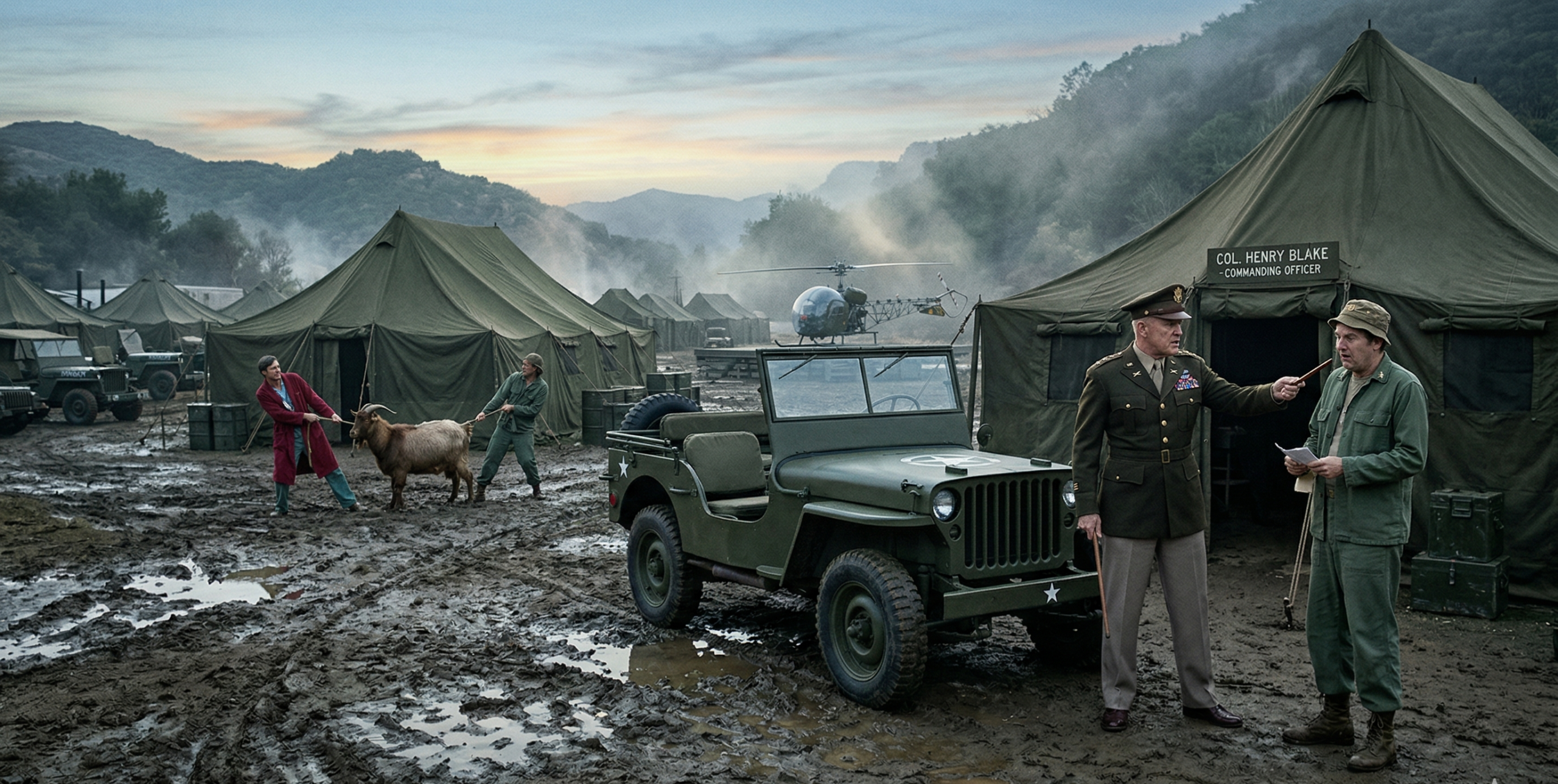 Hawkeye Pierce bolted upright in his cot inside the Swamp, his head pounding from a combination of exhaustion, residual O.R. adrenaline, and exactly two sips of his homemade gin. Across the tent, Trapper John McIntyre was already pulling on his boots, his eyes wide with the universal terror of an enlisted man facing unexpected brass.