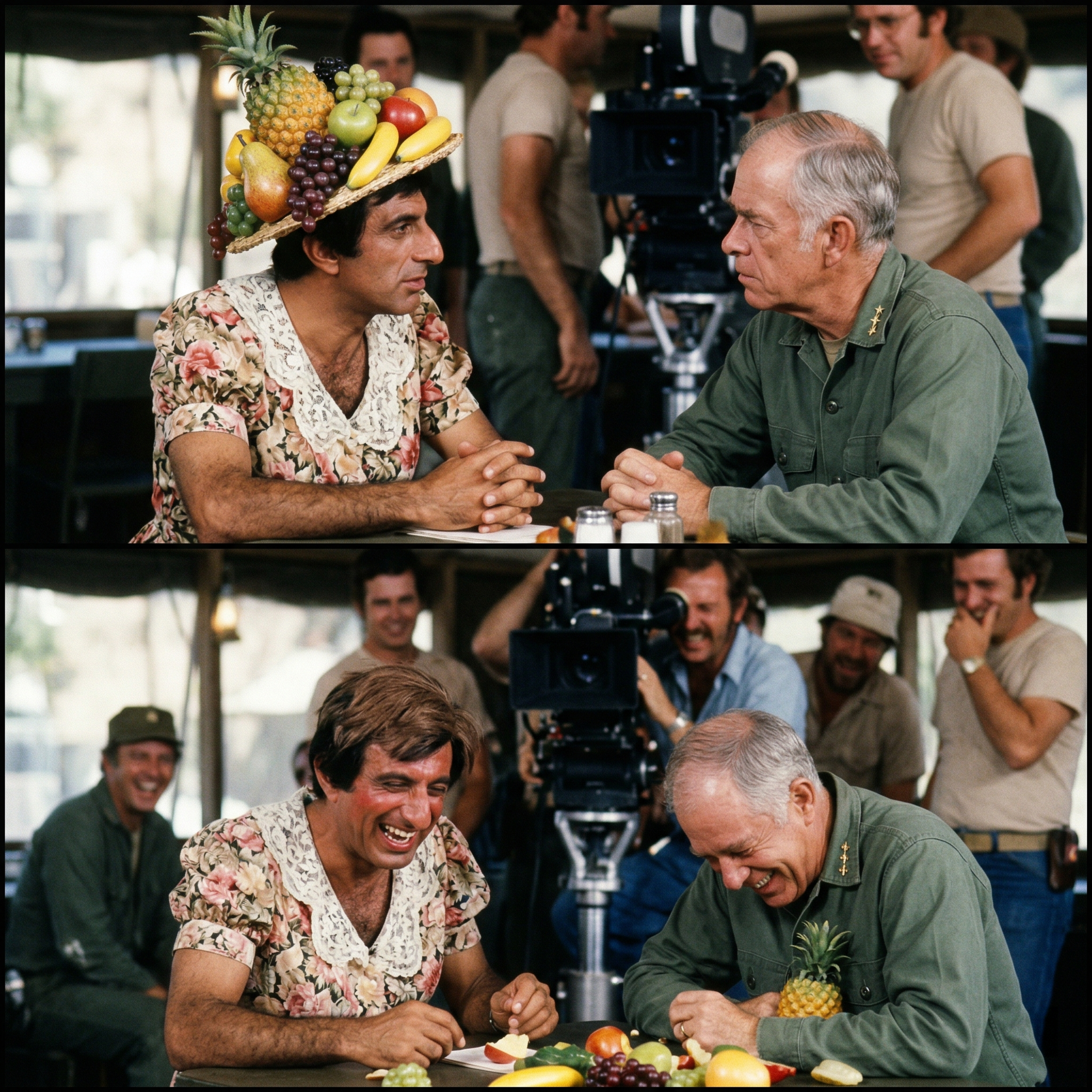 But seeing Harry Morgan—a veteran of the industry who had seen it all—lose his composure over a piece of flying plastic reminded me of the power of a good laugh. It broke the tension of the war, even if it was just a fake war on a television set.