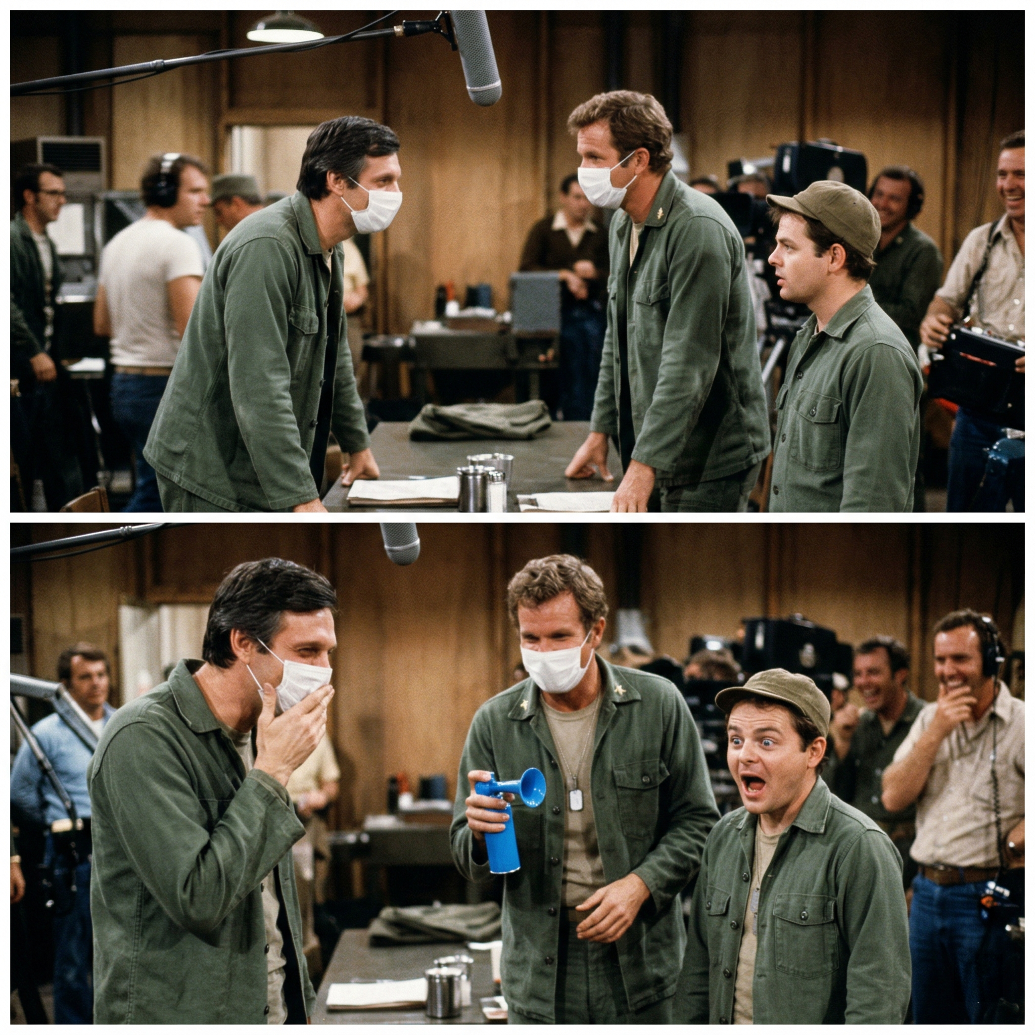 That compressed air horn became a legendary bit of set lore; a crew member later mounted a miniature version in a shadowbox with the inscription, “The Take Wayne Rogers Won.”