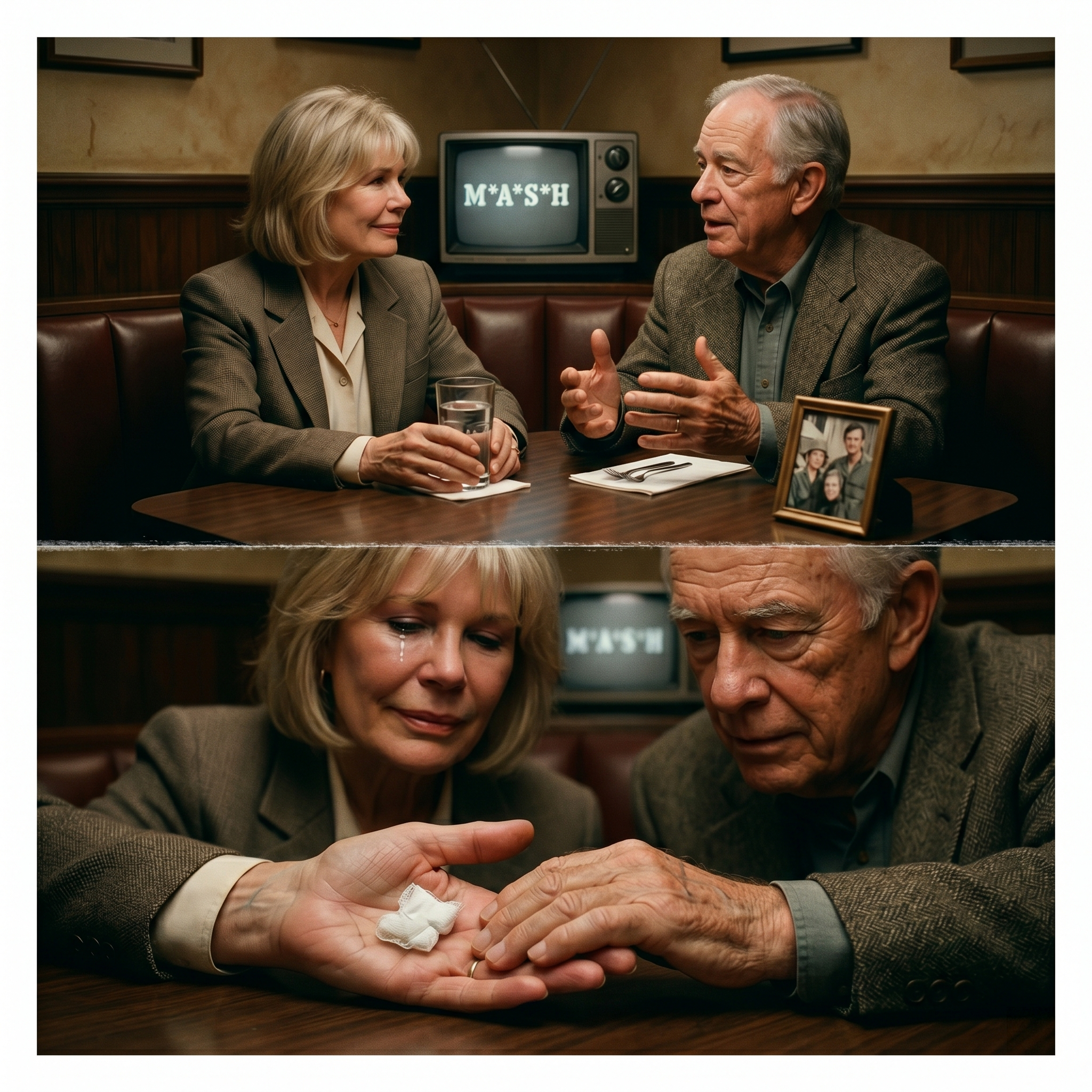Mike Farrell leaned back in his chair, a familiar, mischievous glint appearing in his eyes that made him look exactly like B.J. Hunnicutt again.