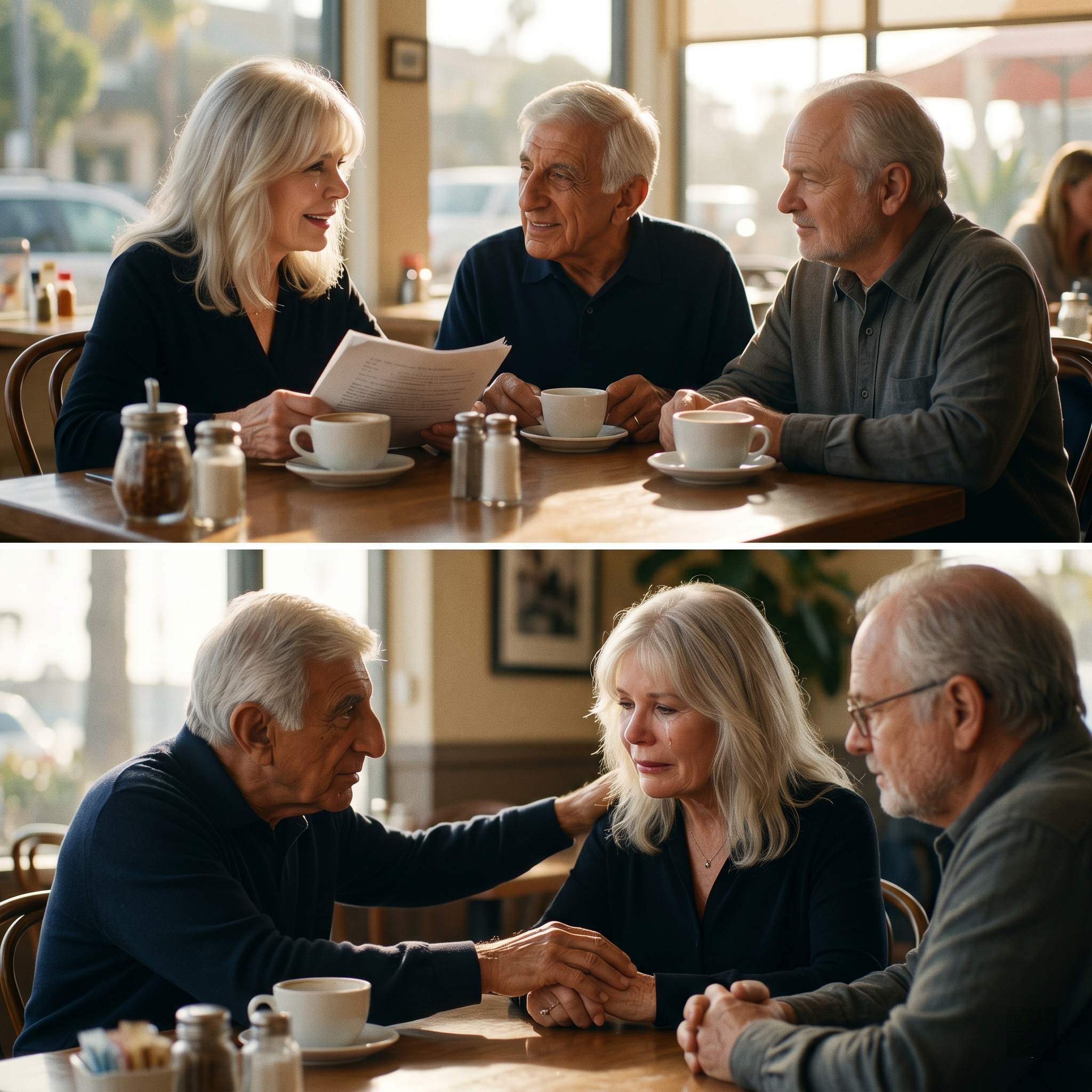 Loretta sat across from Jamie and Gary, the afternoon sun catching the silver in their hair.