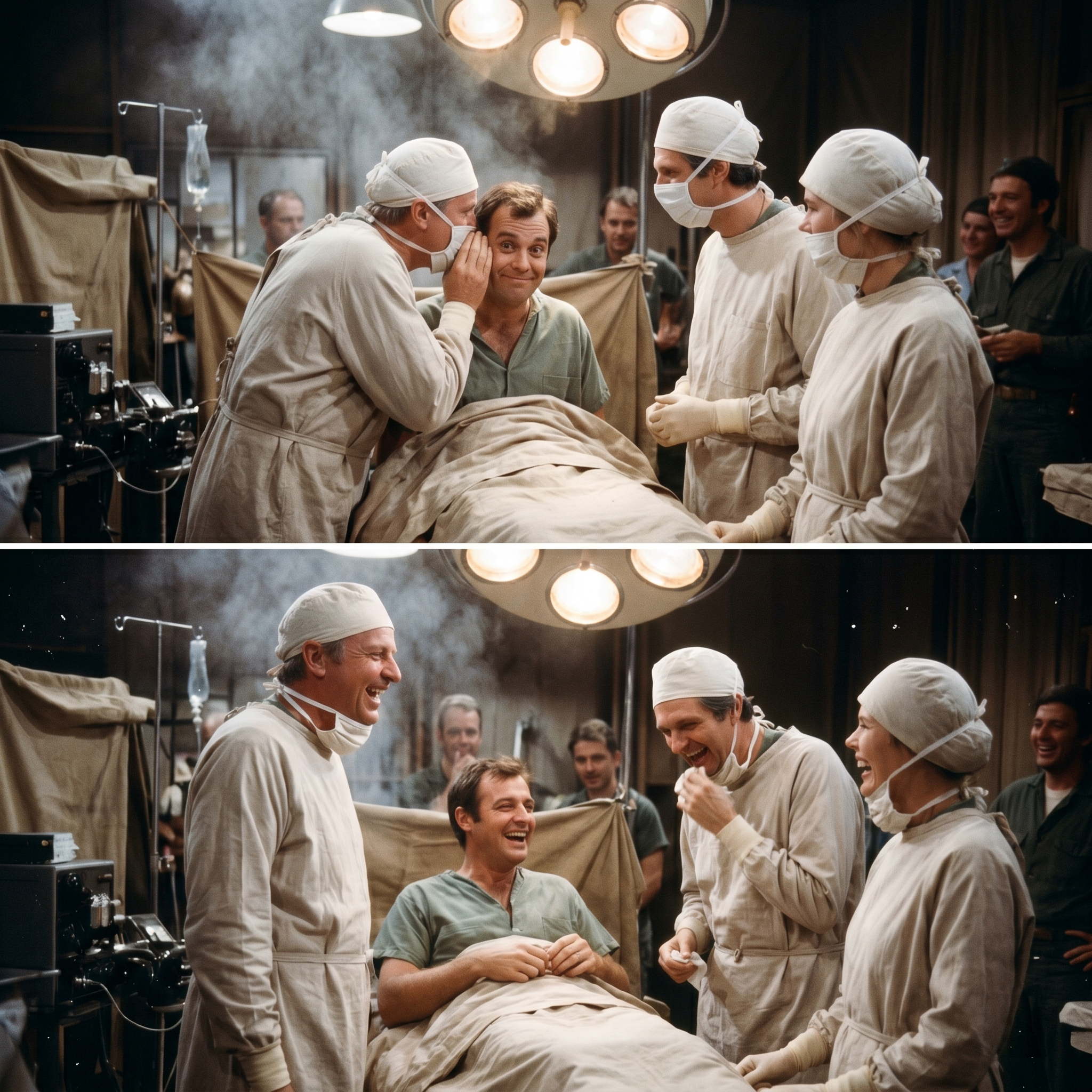 The “patient” on the table finally let out this roar of laughter and sat bolt upright, which looked terrifying if you weren’t in on the joke.