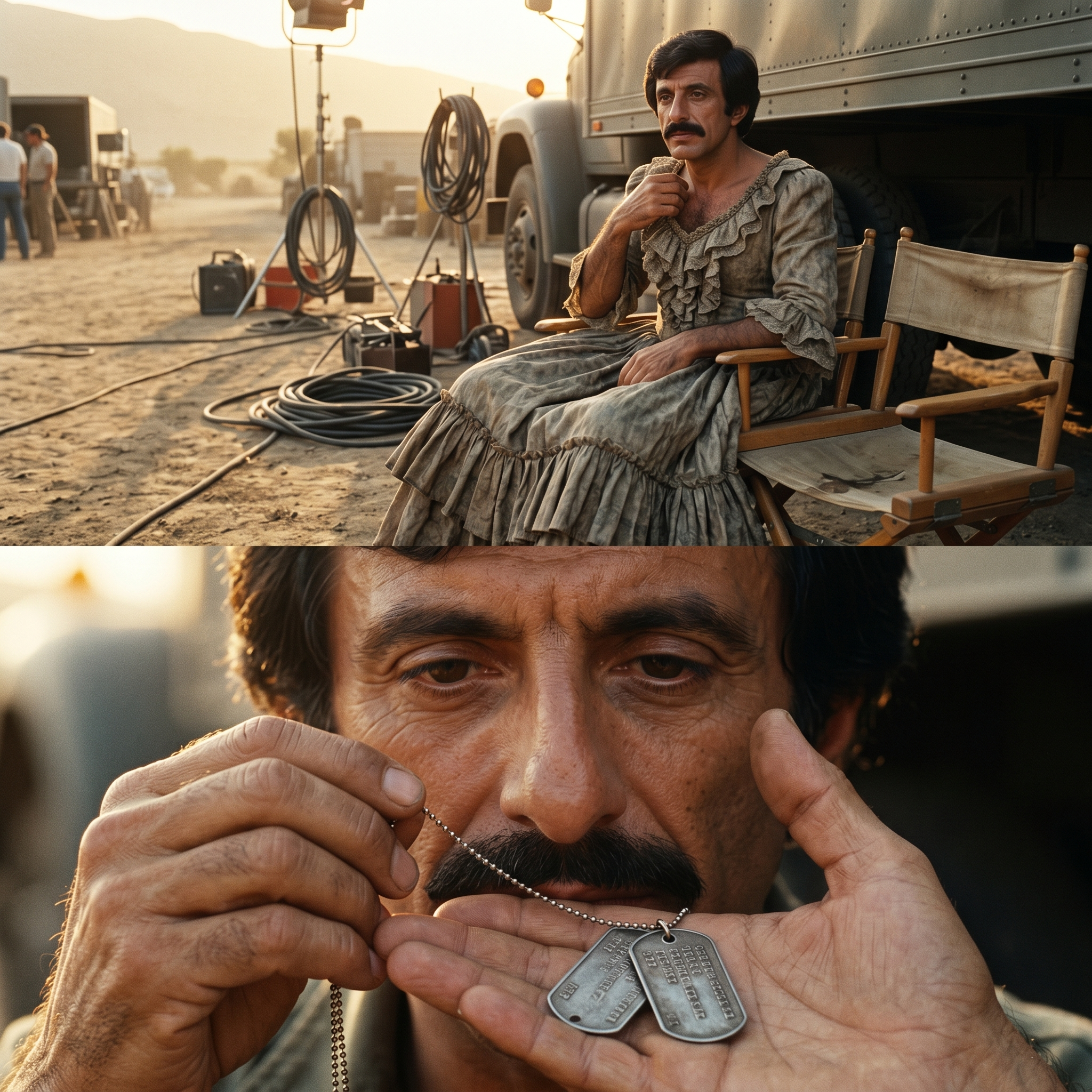 He pulled out a small chain, the metal links clicking softly. He held the two embossed plates in his palm, staring at them with an intensity that had nothing to do with the script. He knew that if he let these slide out during a shot, the entire illusion of the “cowardly” Klinger would vanish.