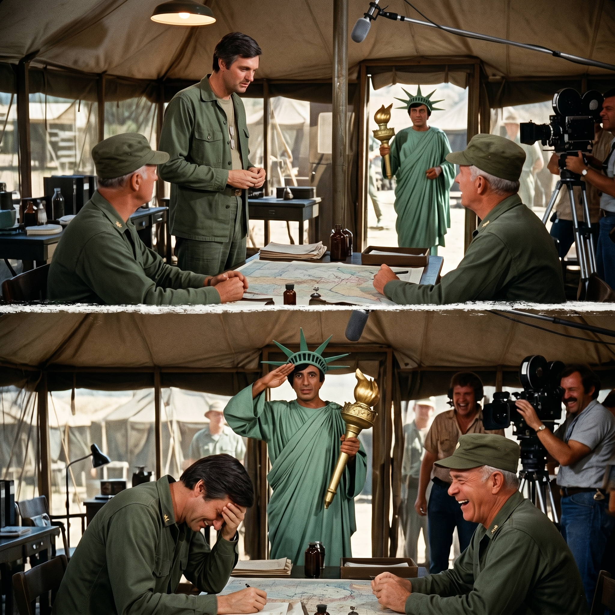 Alan Alda and Harry Morgan were in the middle of a deeply emotional command tent scene.
