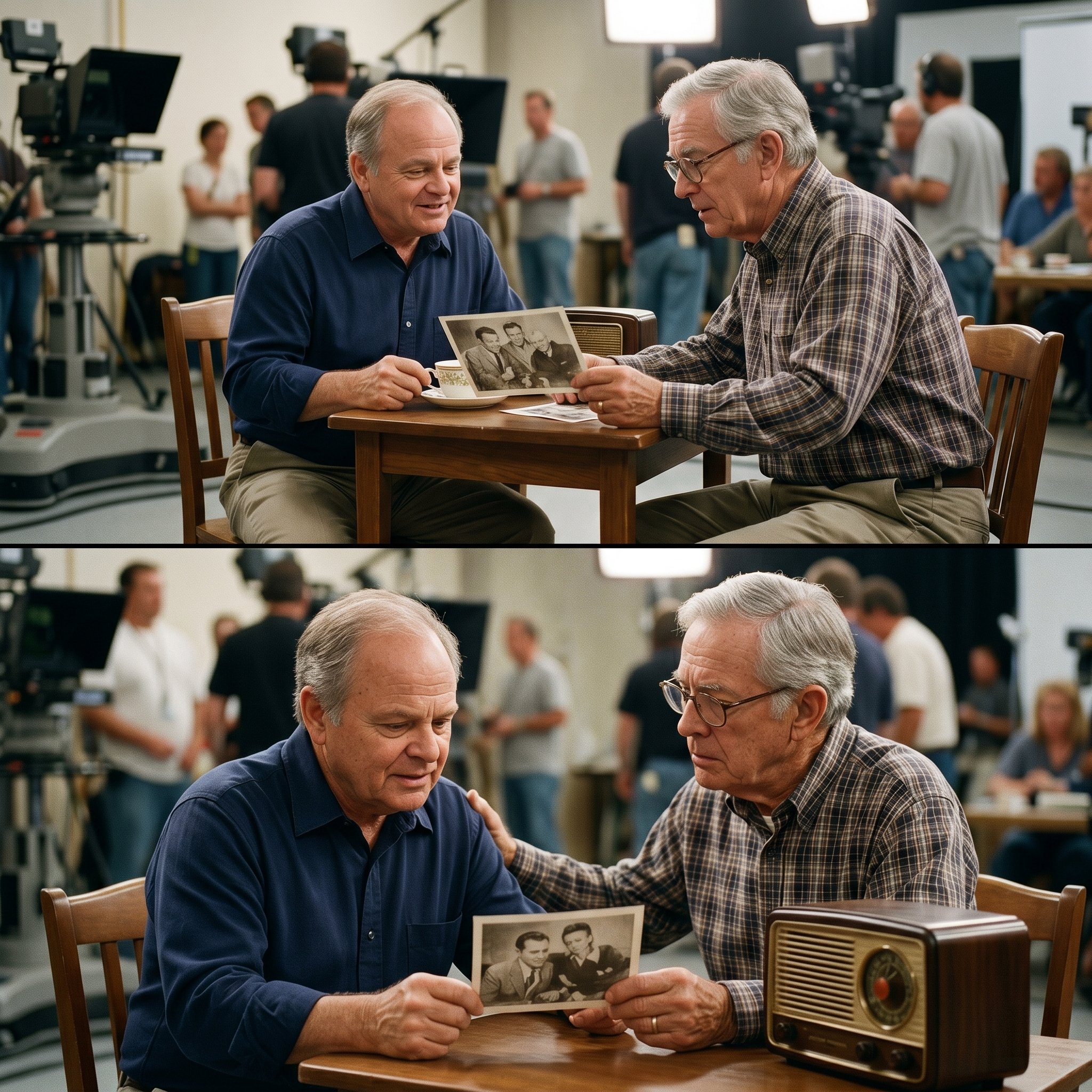 Sitting across from him was Harry Morgan, his features softer now than the formidable Colonel Potter, but those eyes were still just as sharp, just as warm.