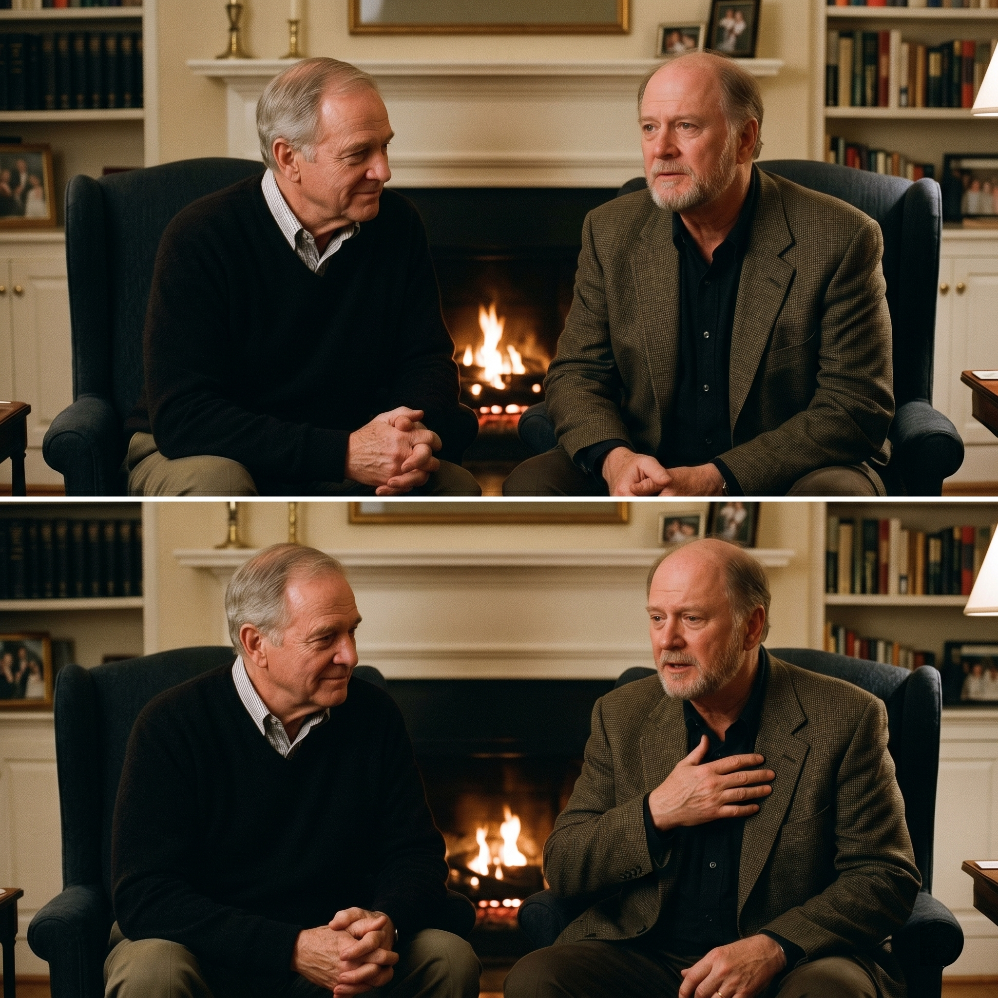 The fire in the hearth flickered low, and for a second, they weren’t two legendary actors in their later years.