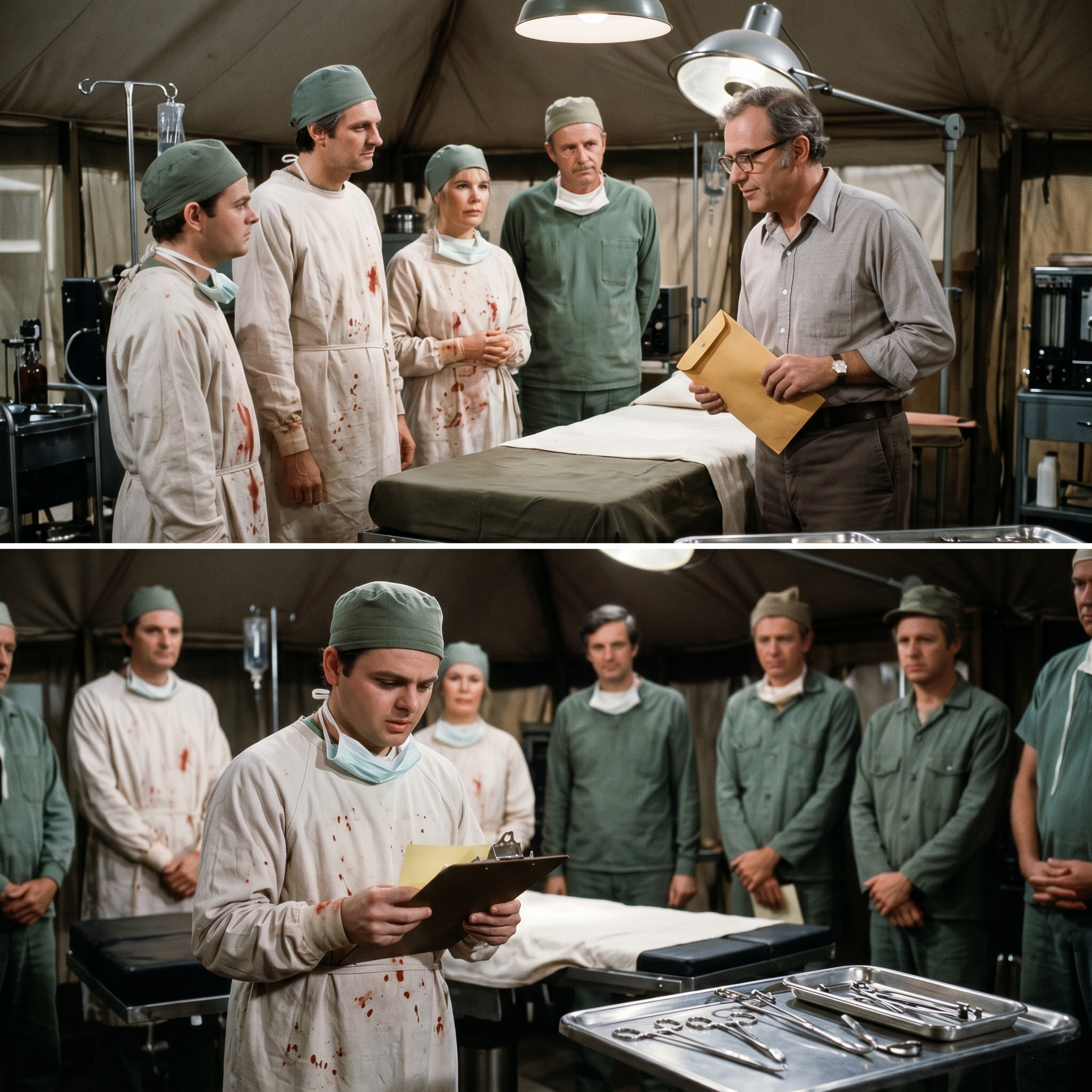 But then, the show’s creator asked the cast to gather back on the surgical ward set.