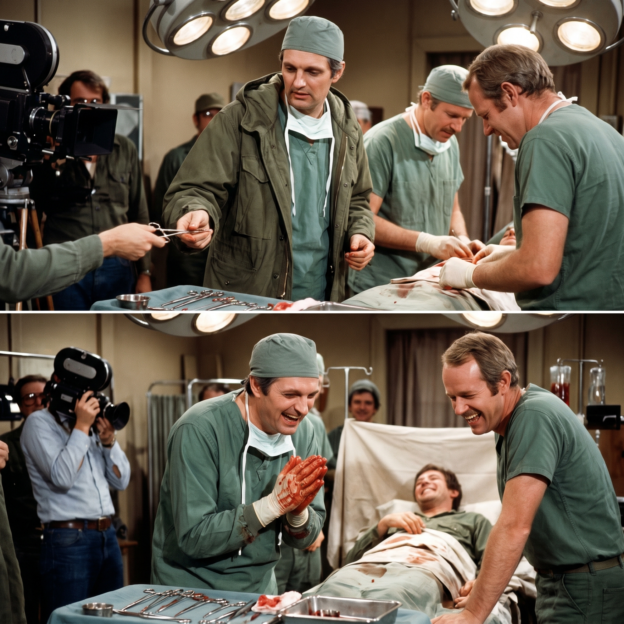 The script called for a high-stakes surgery where Hawkeye and B.J. were working feverishly to save a young soldier who was fading fast.