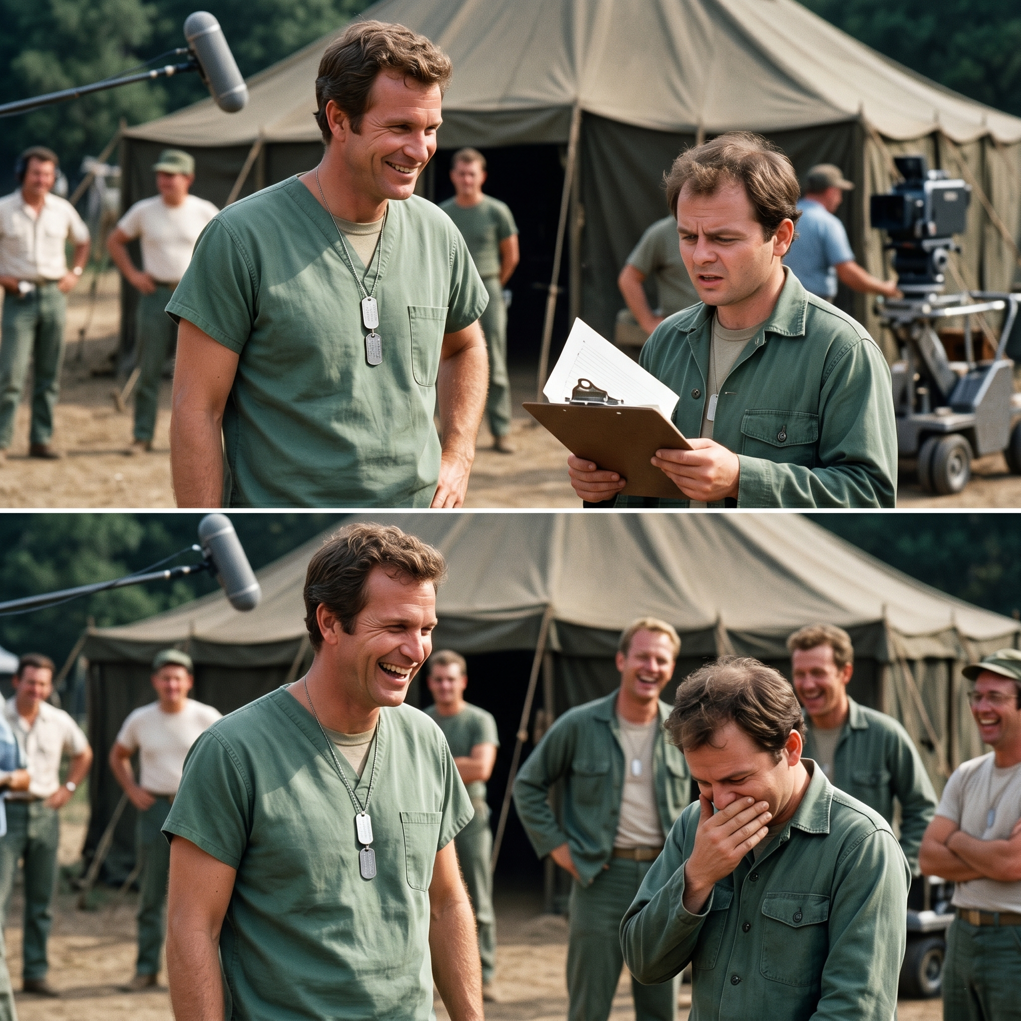 It started with me, then the script supervisor lost it, and then Mike Farrell, who was standing just off-camera, started howling.