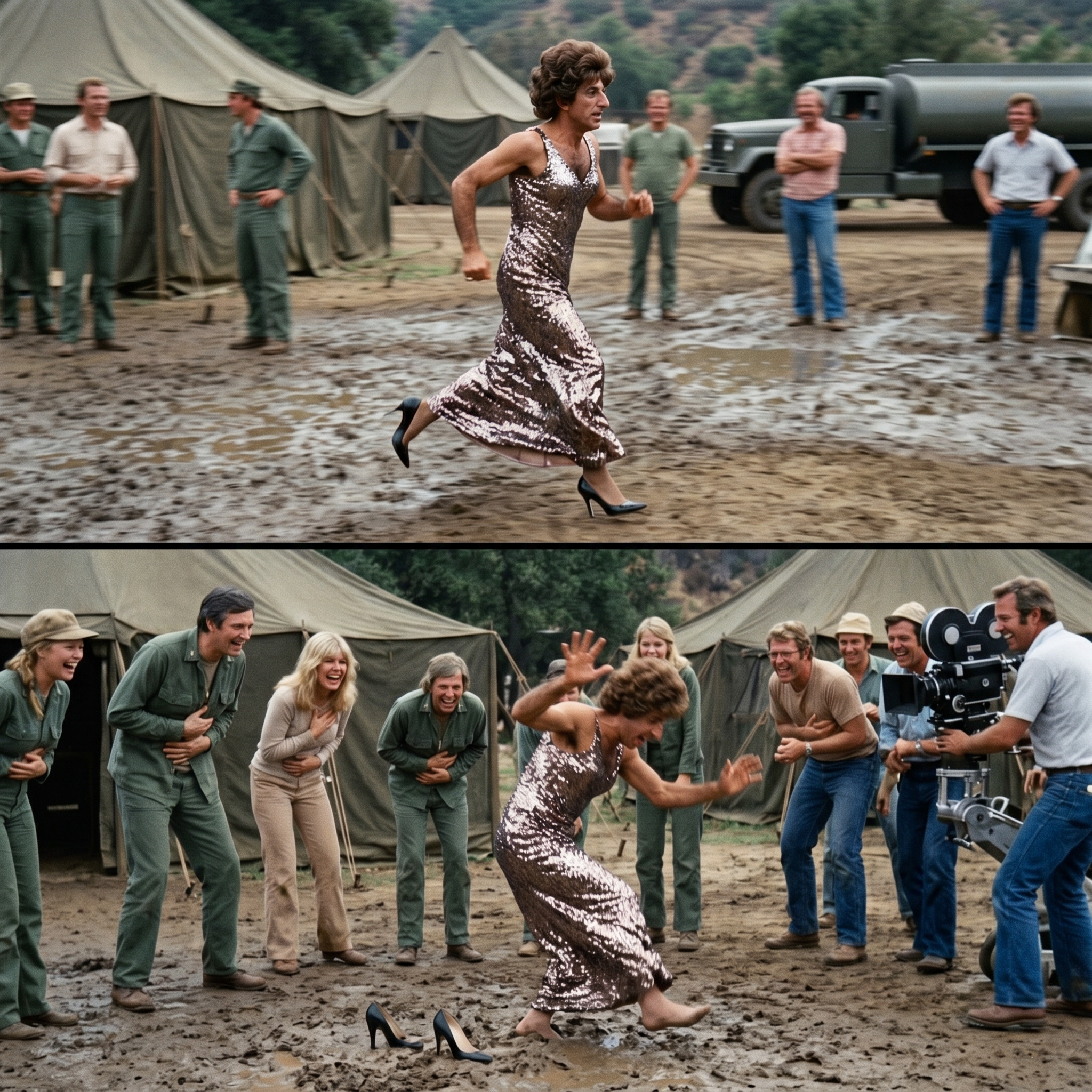 But in the quiet moments between takes, they were just a group of exhausted friends, trying not to laugh at a man stuck in the mud.