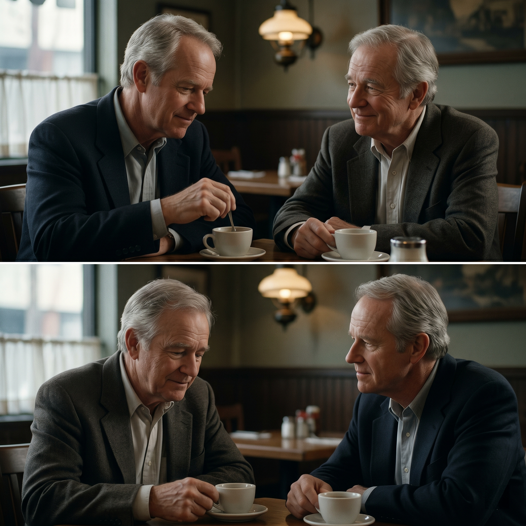 The veteran actor stirred his coffee slowly.