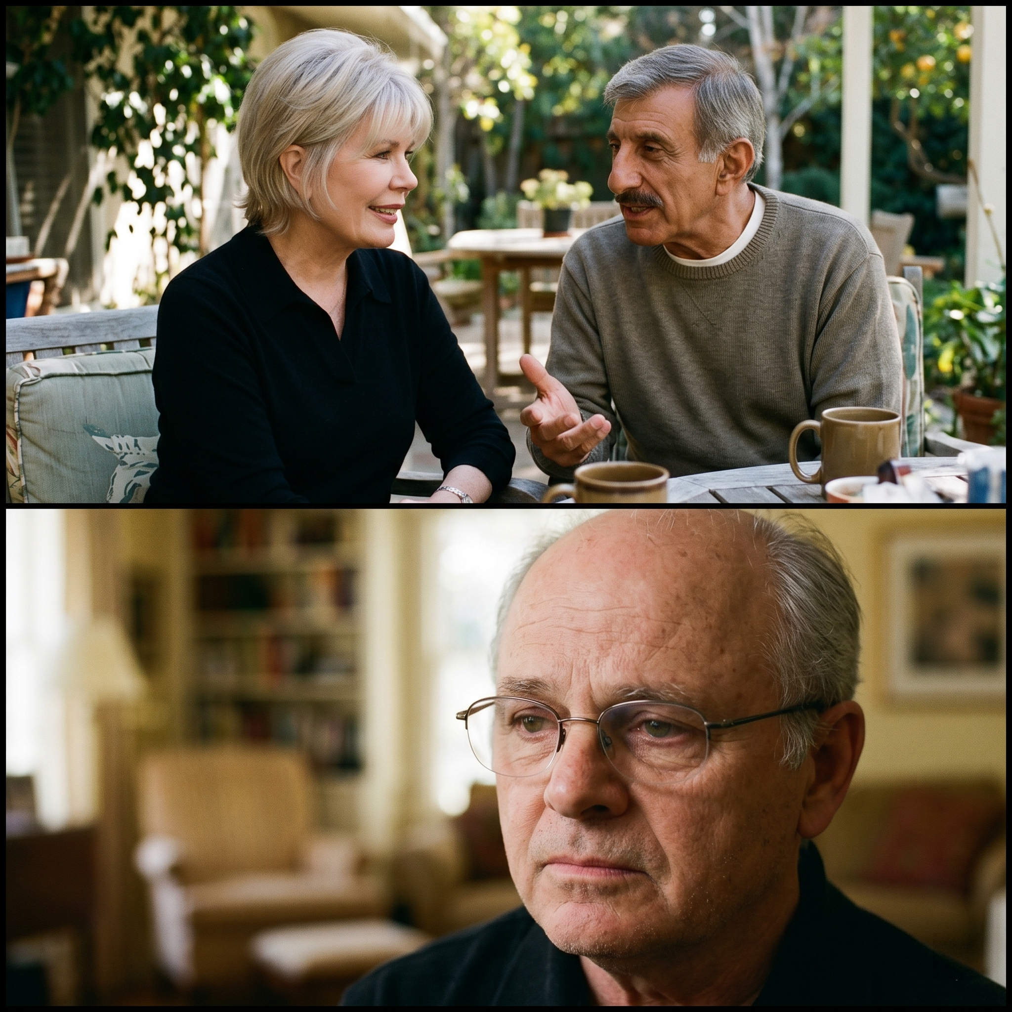 Loretta Swit sits across from Jamie Farr, the California sun catching the silver in their hair.