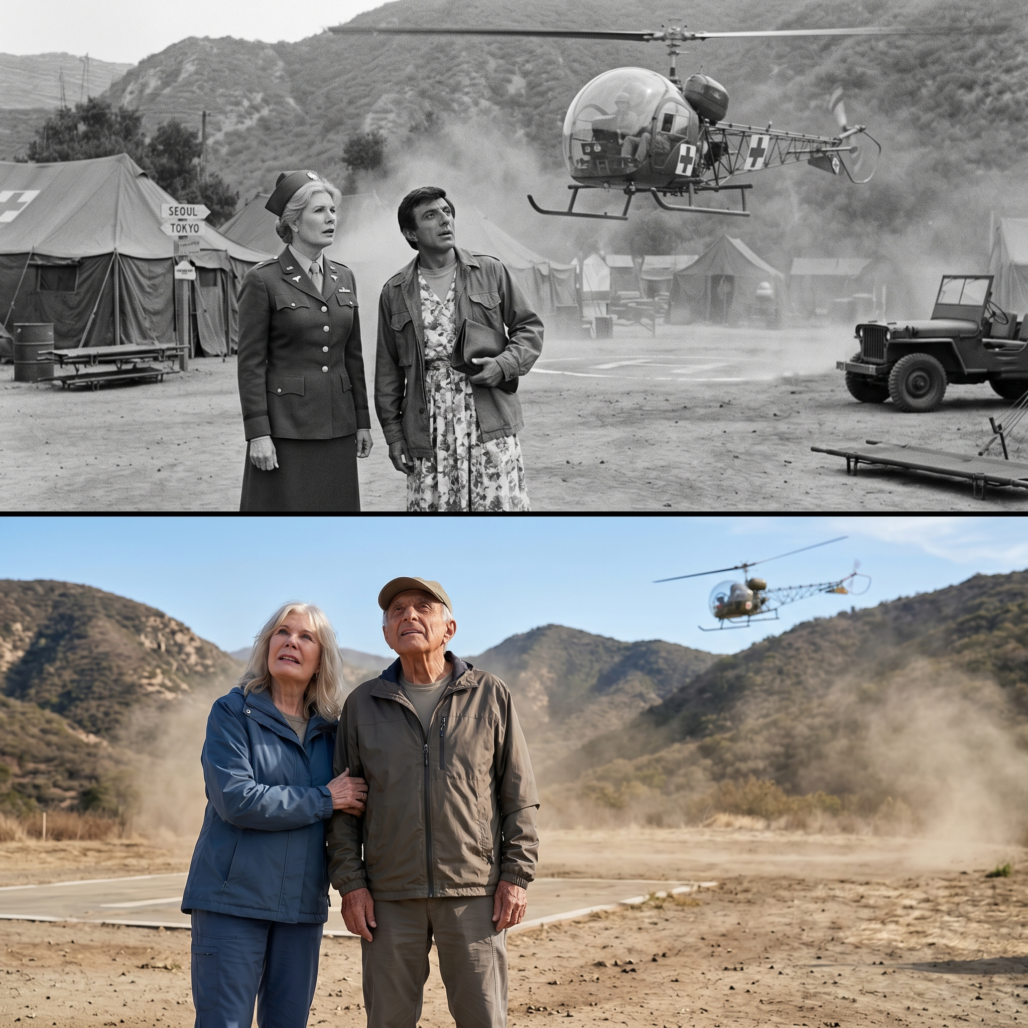 Beside her stood Jamie Farr, his hands tucked deep into his pockets, his gaze fixed on a horizon that hadn’t changed in fifty years.