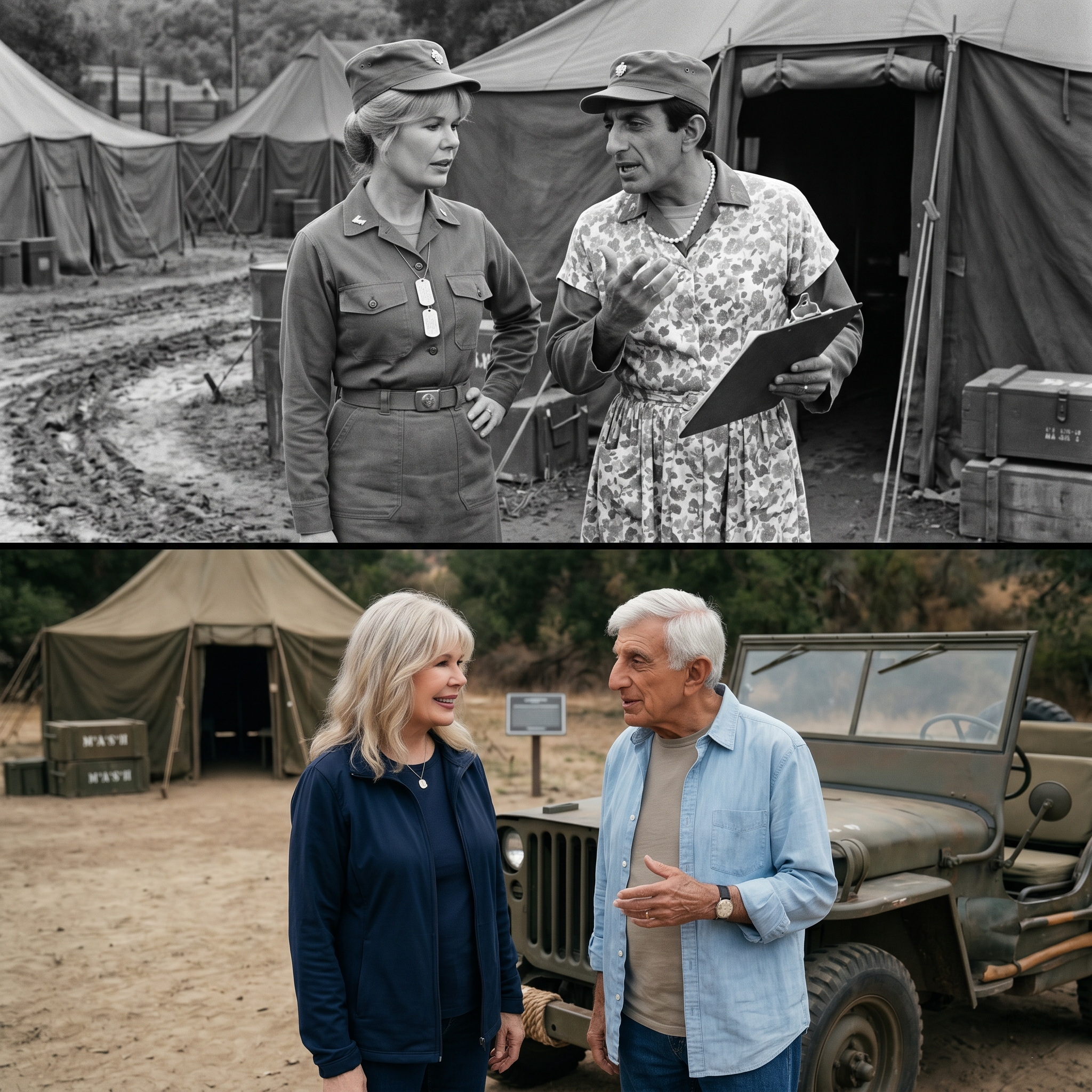 Loretta Swit and Jamie Farr stood at the edge of a dusty clearing, their shadows stretching out over the gravel like long-lost memories.