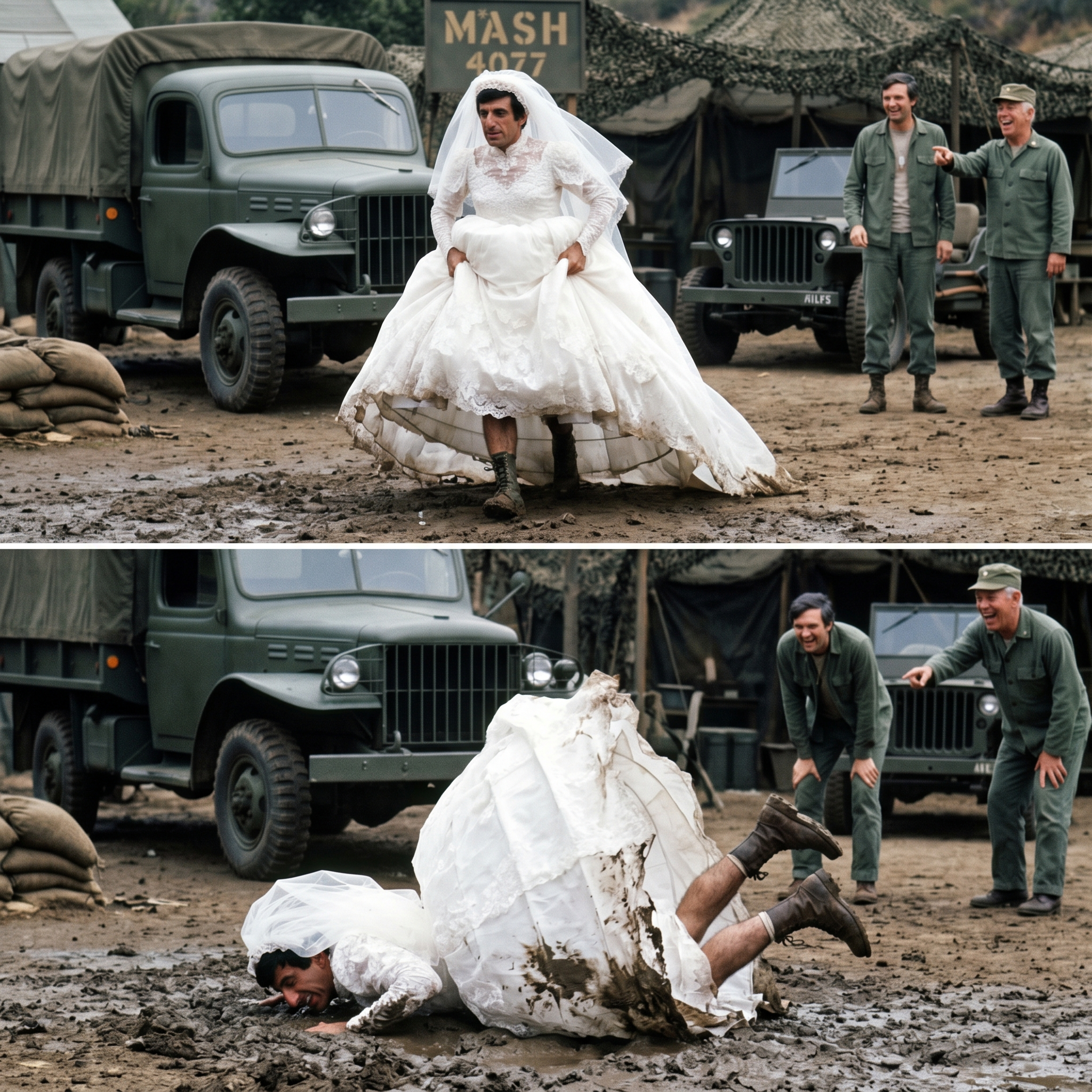 I remember looking at Alan Alda before the take. He was just leaning against a jeep, smirking at me. He knew. We all knew that physics was not on my side that day.