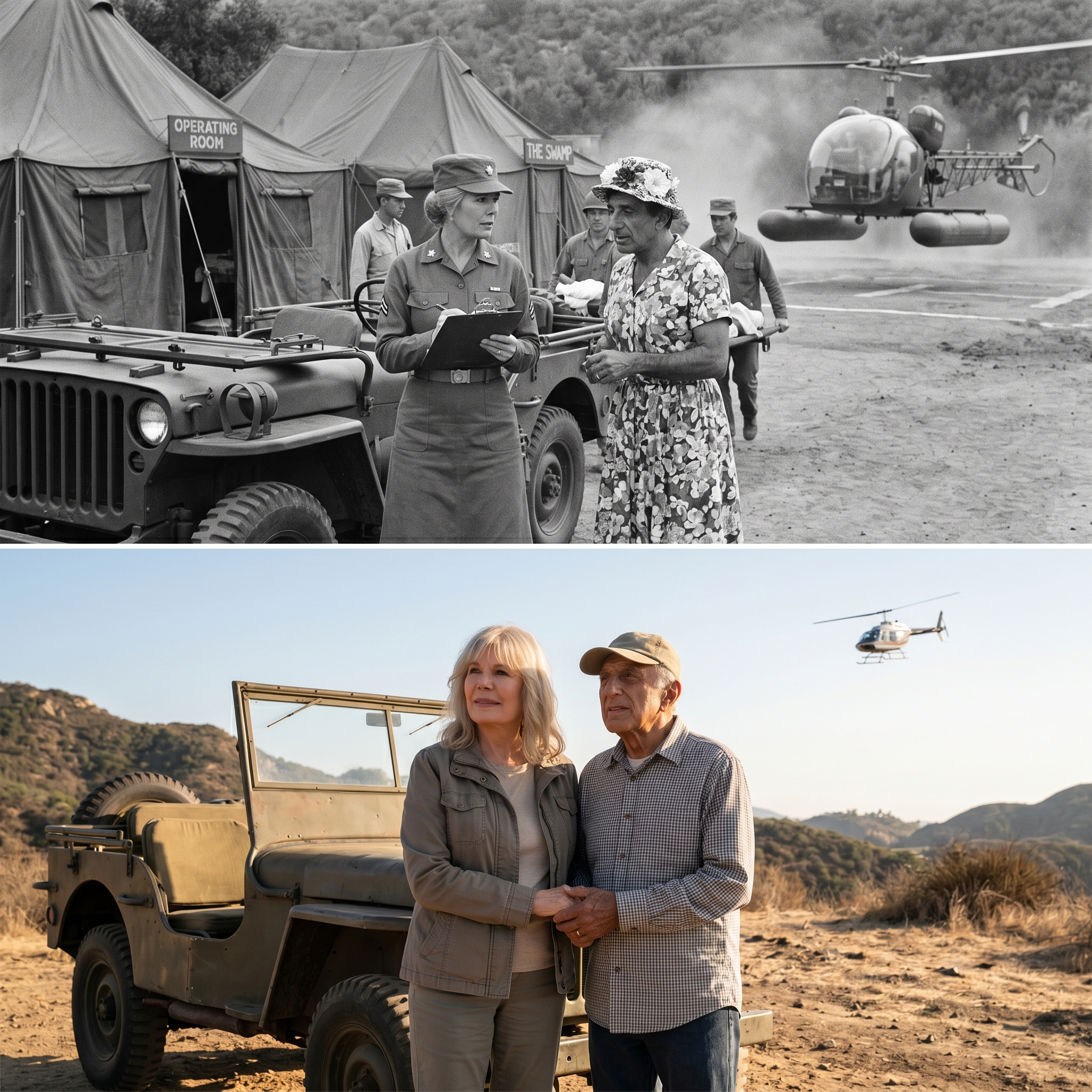 Beside her, Jamie Farr adjusted his cap, his eyes scanning the horizon.