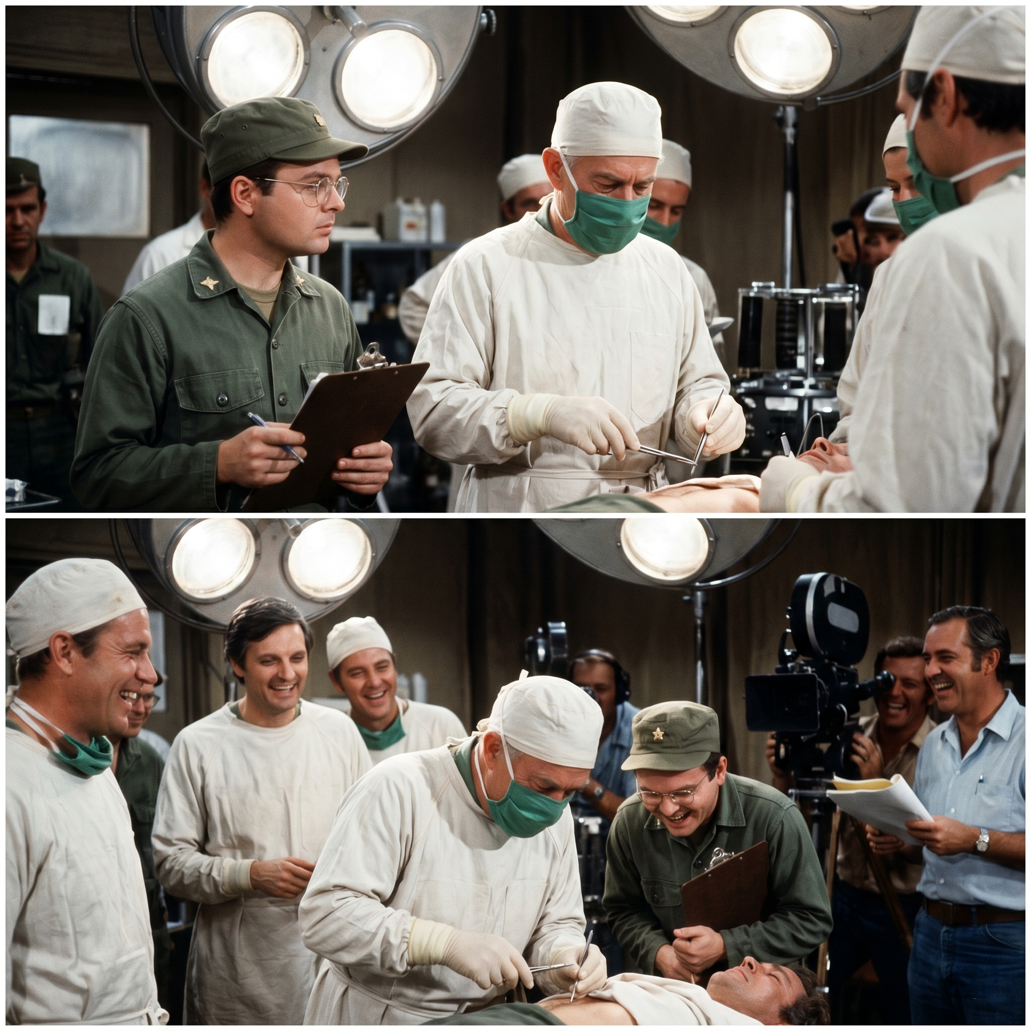 Within thirty seconds, the entire surgical staff of the 4077th was doubled over, clutching their stomachs.