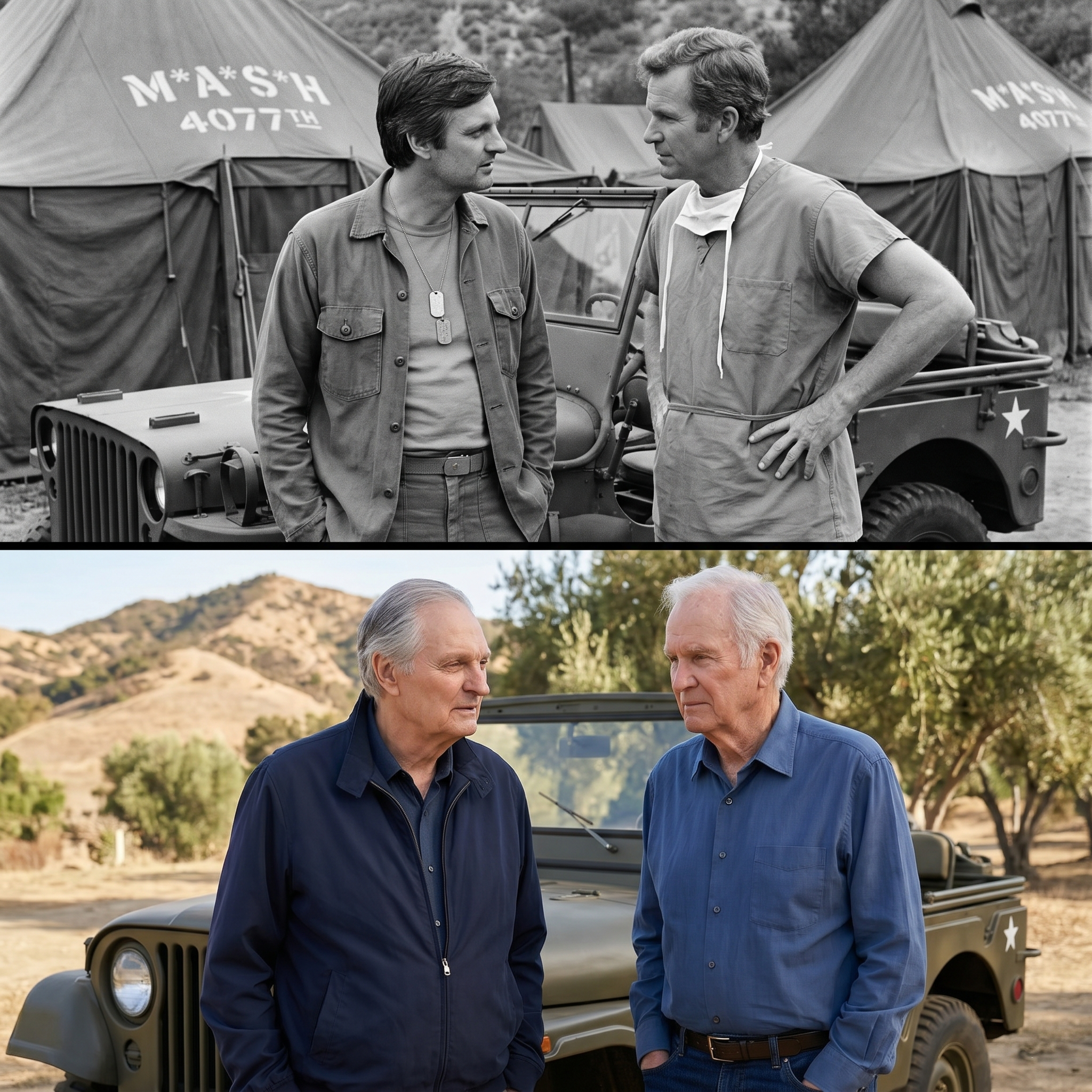 Jamie Farr and Mike Farrell stood near the edge of the old filming site, a place the world once knew as the 4077th.