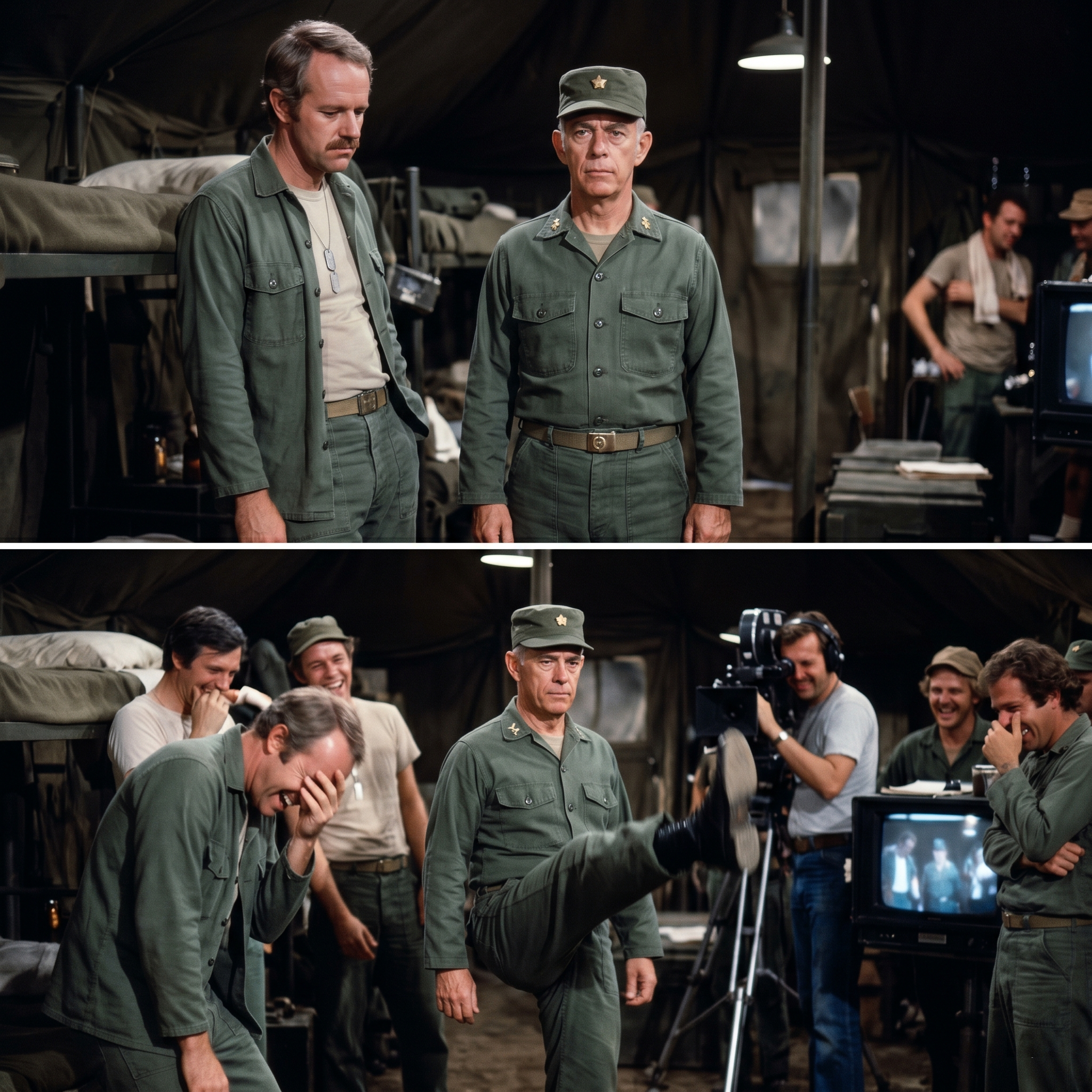 For a split second, I didn’t know if I should call a medic or join in, but the sheer absurdity of Colonel Potter doing a chorus line kick in the middle of a war zone broke something inside all of us.