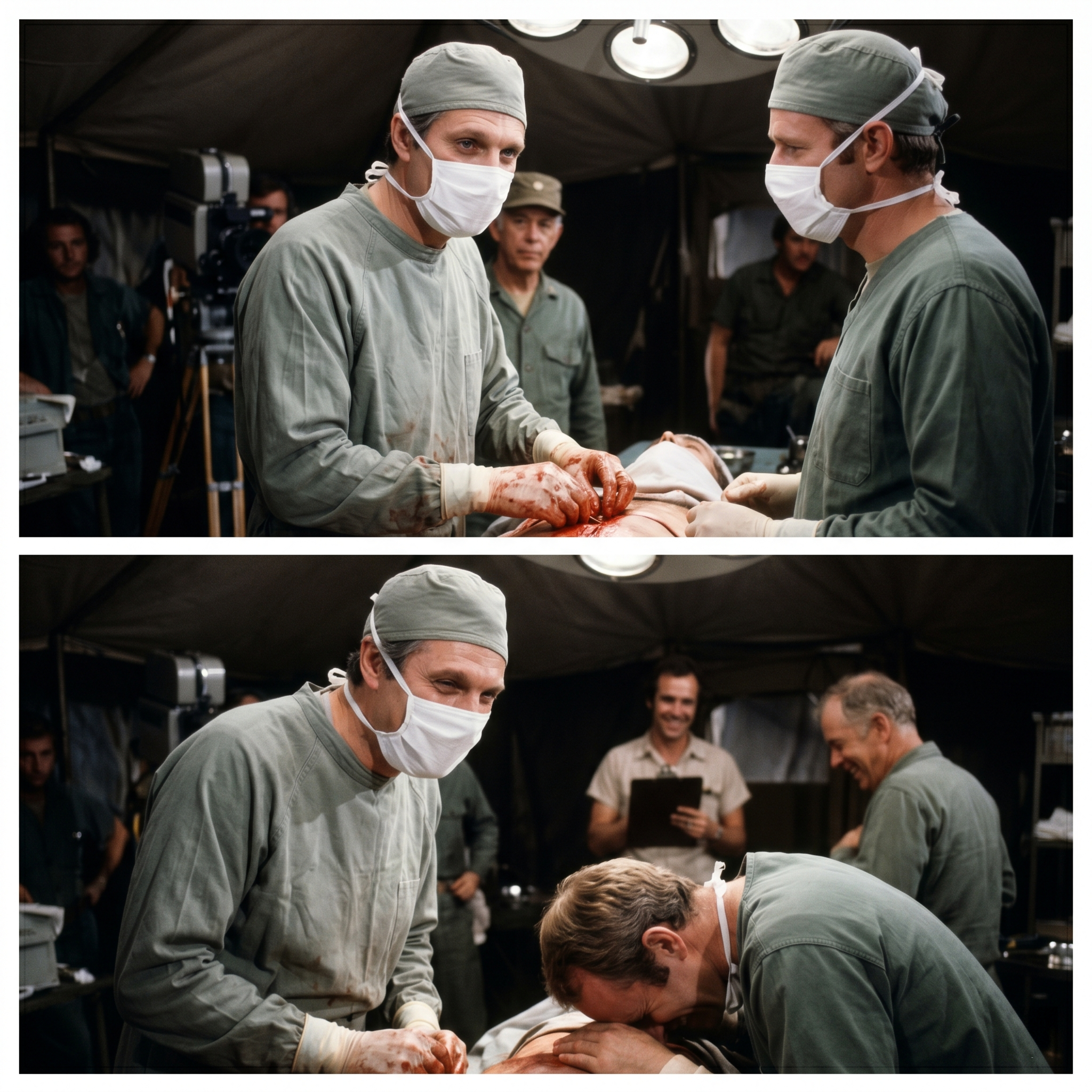 I was playing Hawkeye, and I had this long, somber monologue about the futility of war while working on a “patient” who was supposed to be in critical condition.