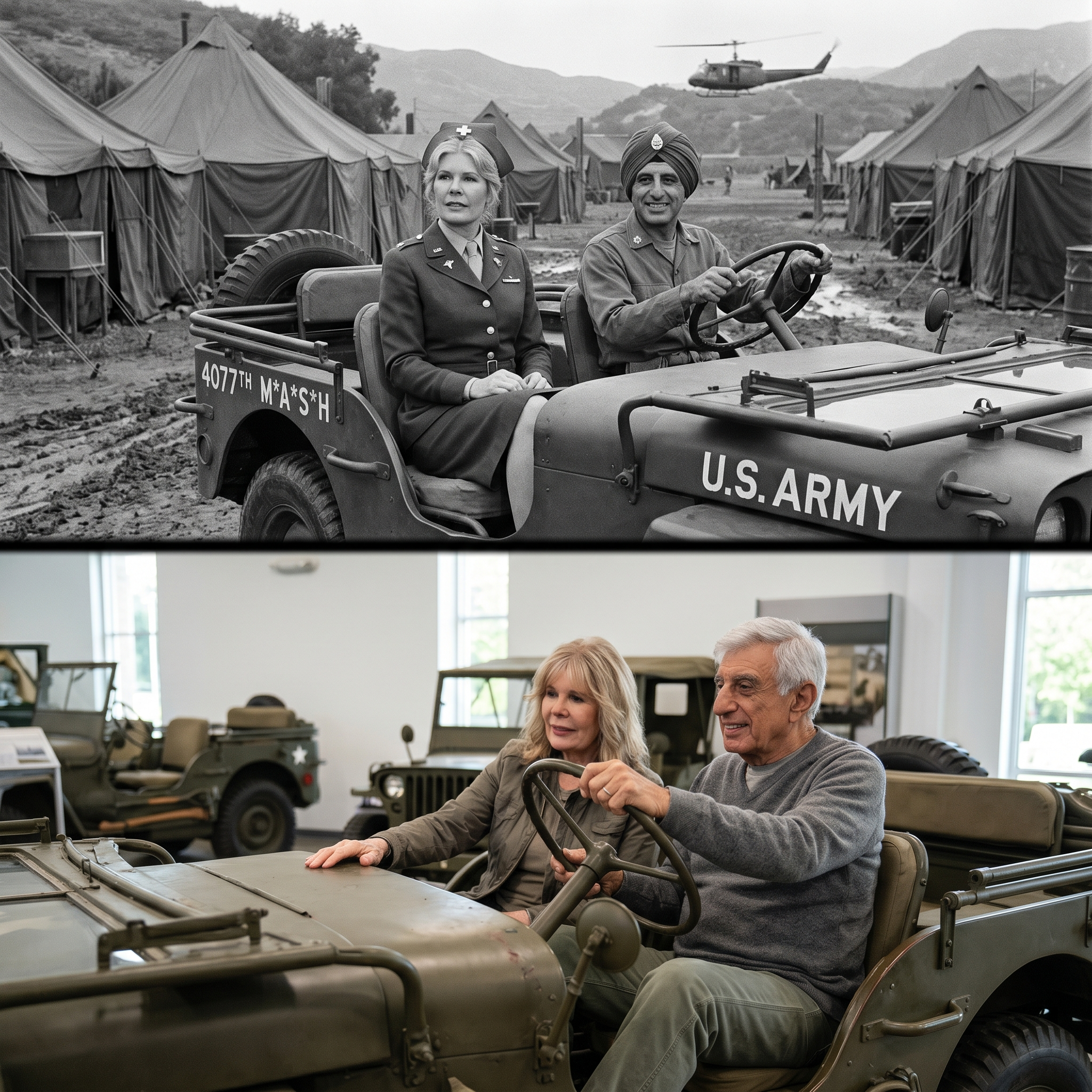 Jamie Farr stood by the fender of the M38A1 Jeep, his hand hovering just an inch above the olive-drab paint.