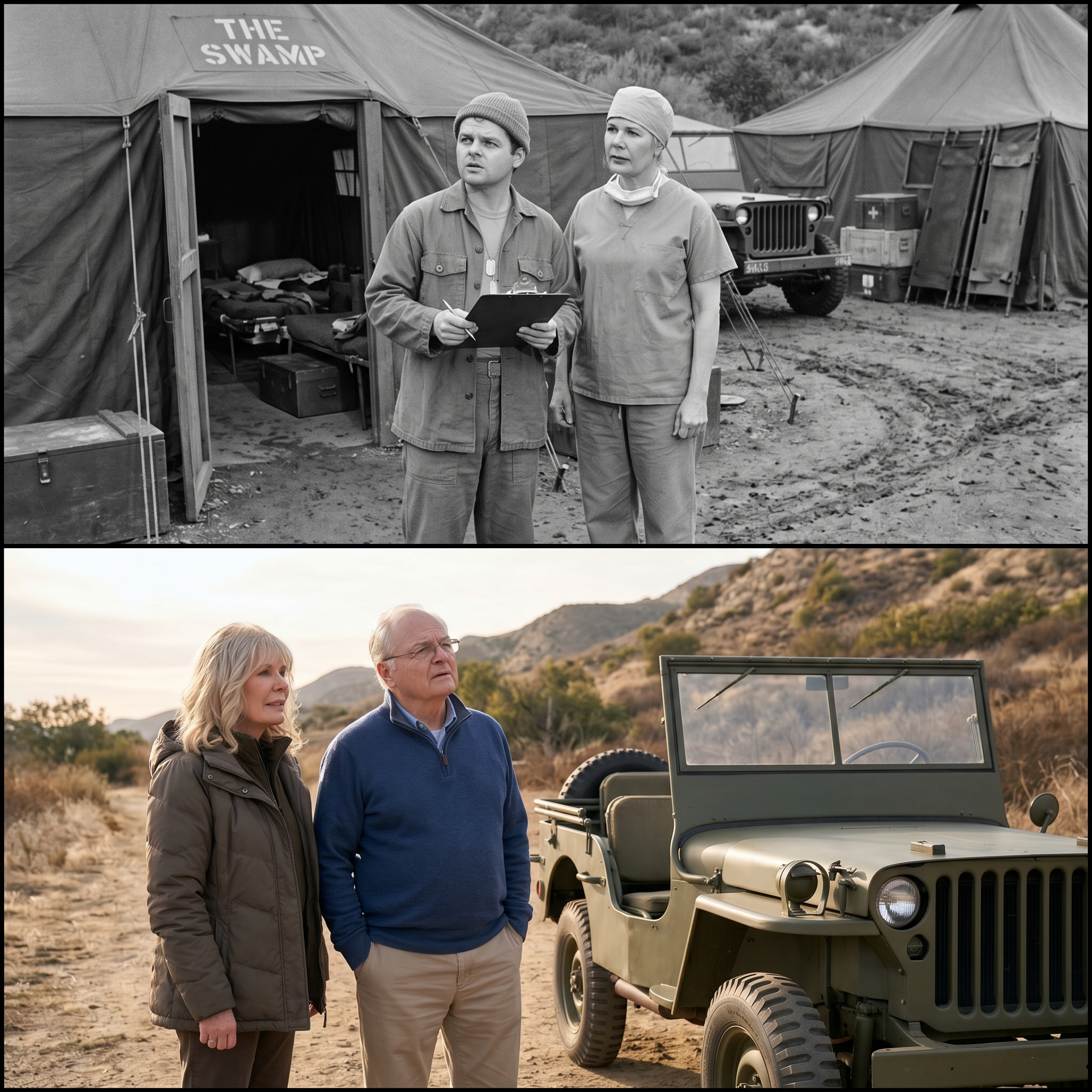 Beside her, Gary Burghoff stood remarkably still, his gaze fixed on a patch of earth where a dusty olive-drab tent had once stood.