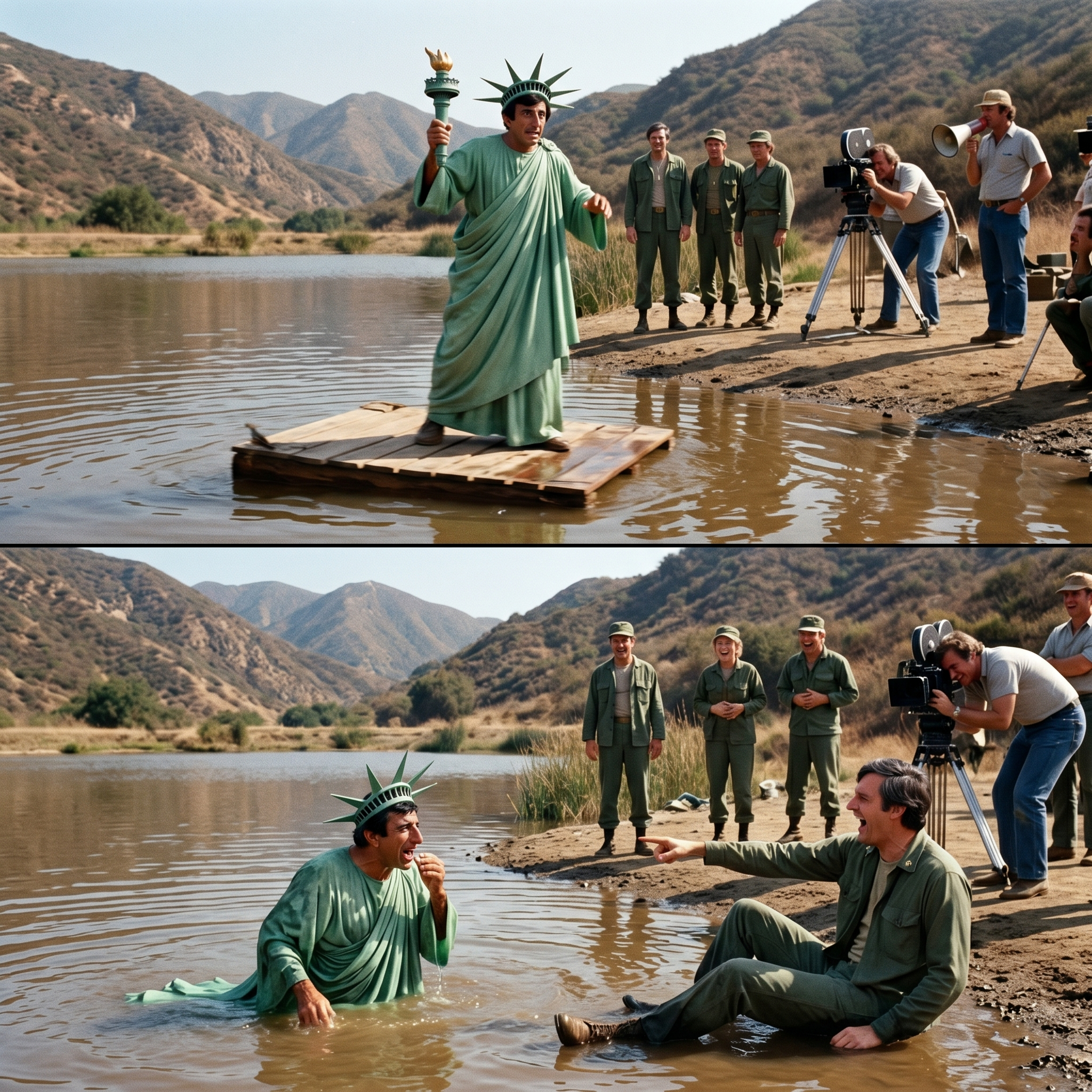 Whenever a scene was going poorly or someone was blowing their lines, one of the guys would whisper, “At least you’re not the Statue of Liberty, Farr.”