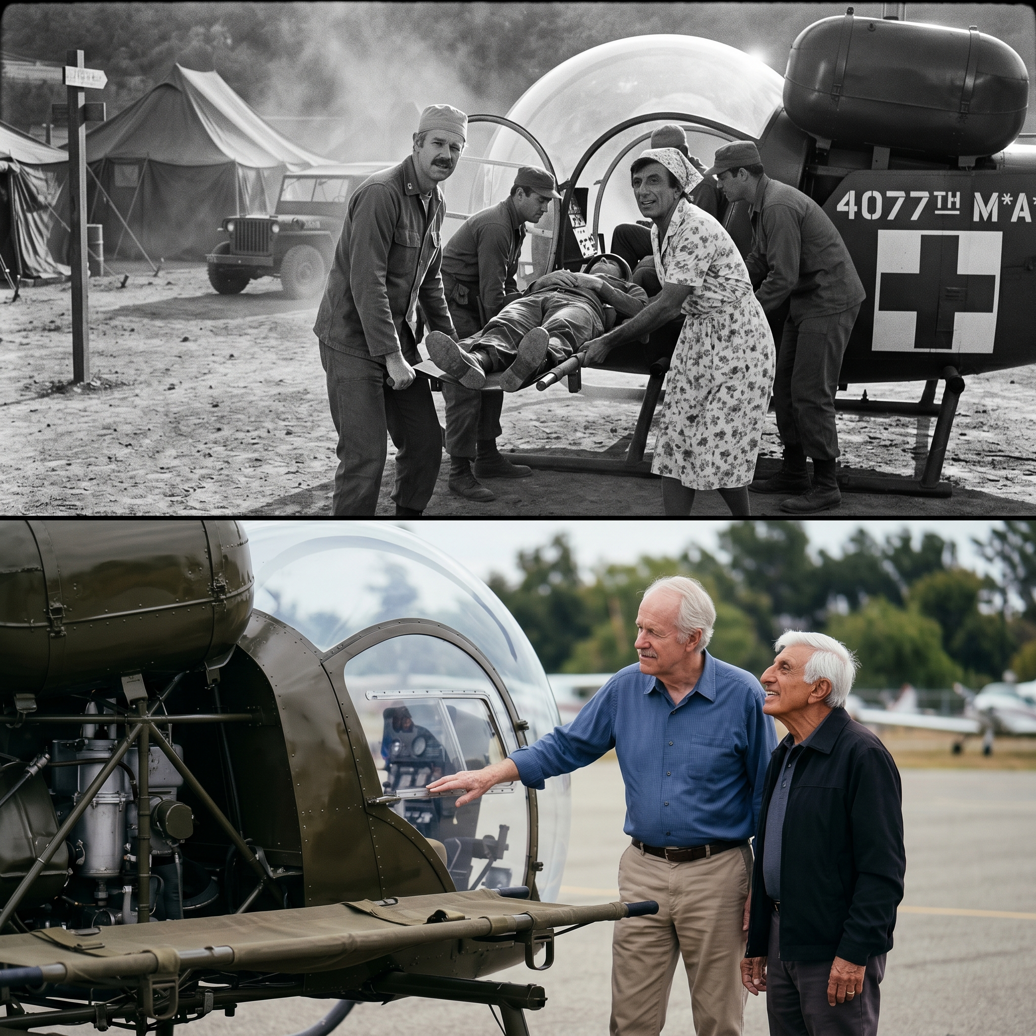 They were recreating the “Incoming” grab—the physical reflex of meeting a stretcher as it was lowered from the side of a Bell H-13 Sioux.