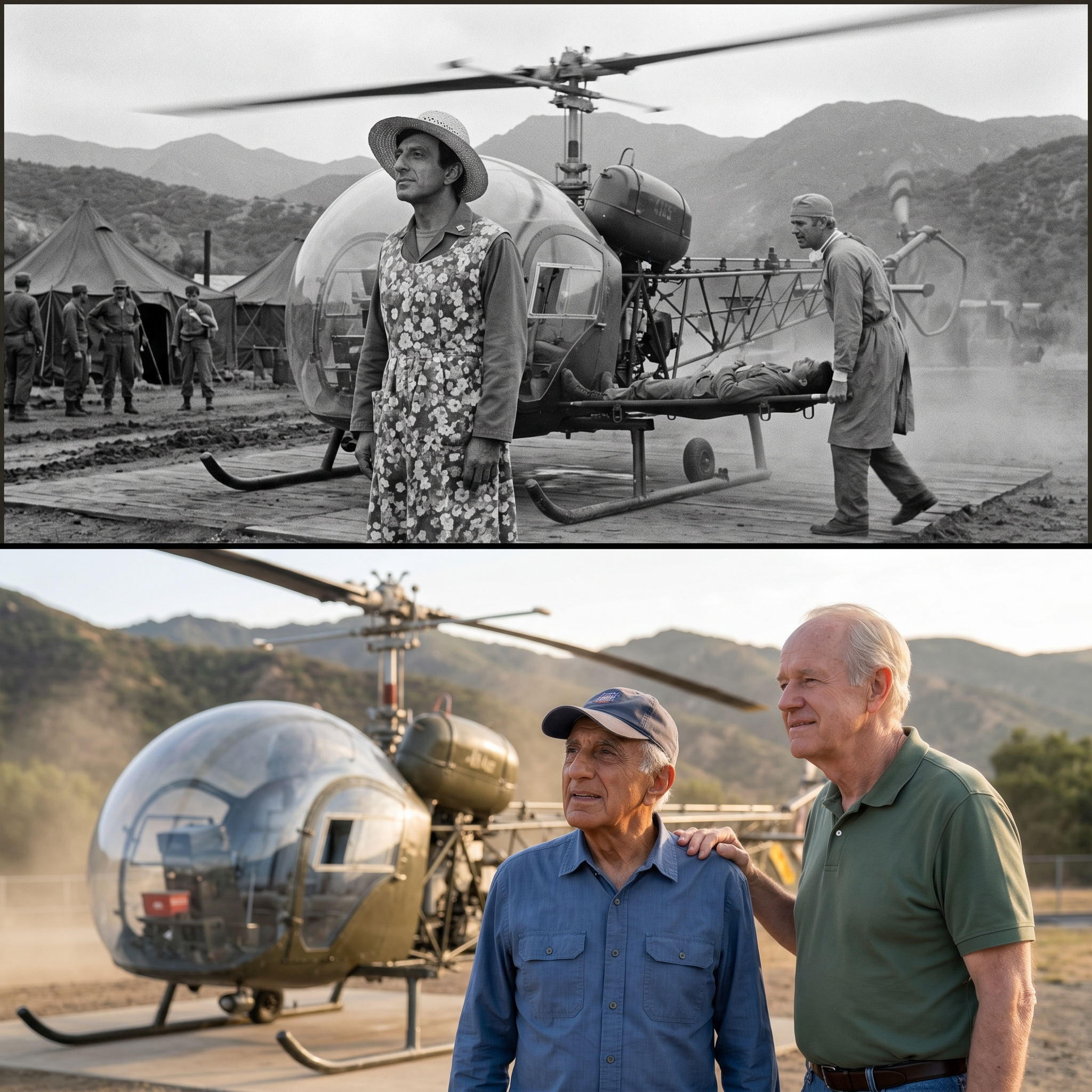 Beside him stood Mike Farrell, the man who had been his brother in arms through years of television history and decades of real life.