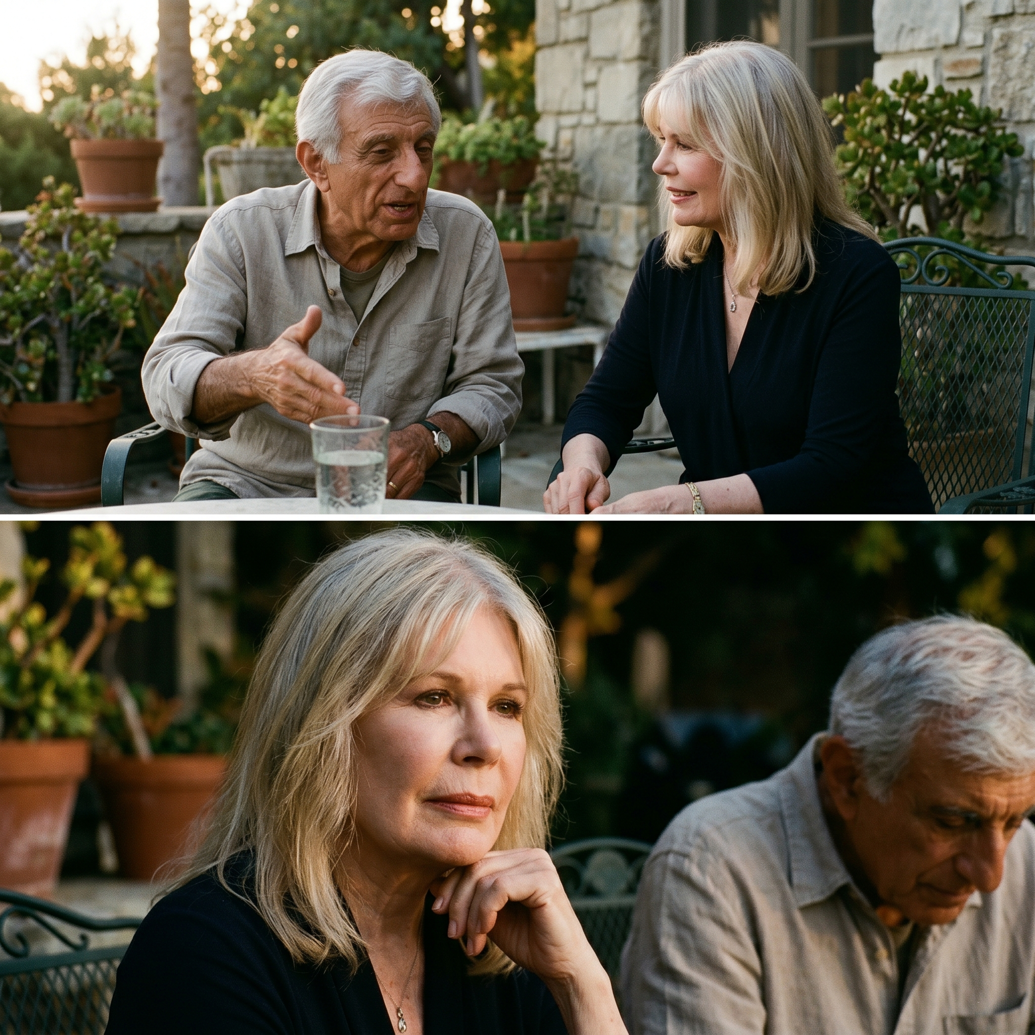 The sun was setting over a quiet patio in Los Angeles, the kind of golden hour that makes everything look like a vintage photograph.