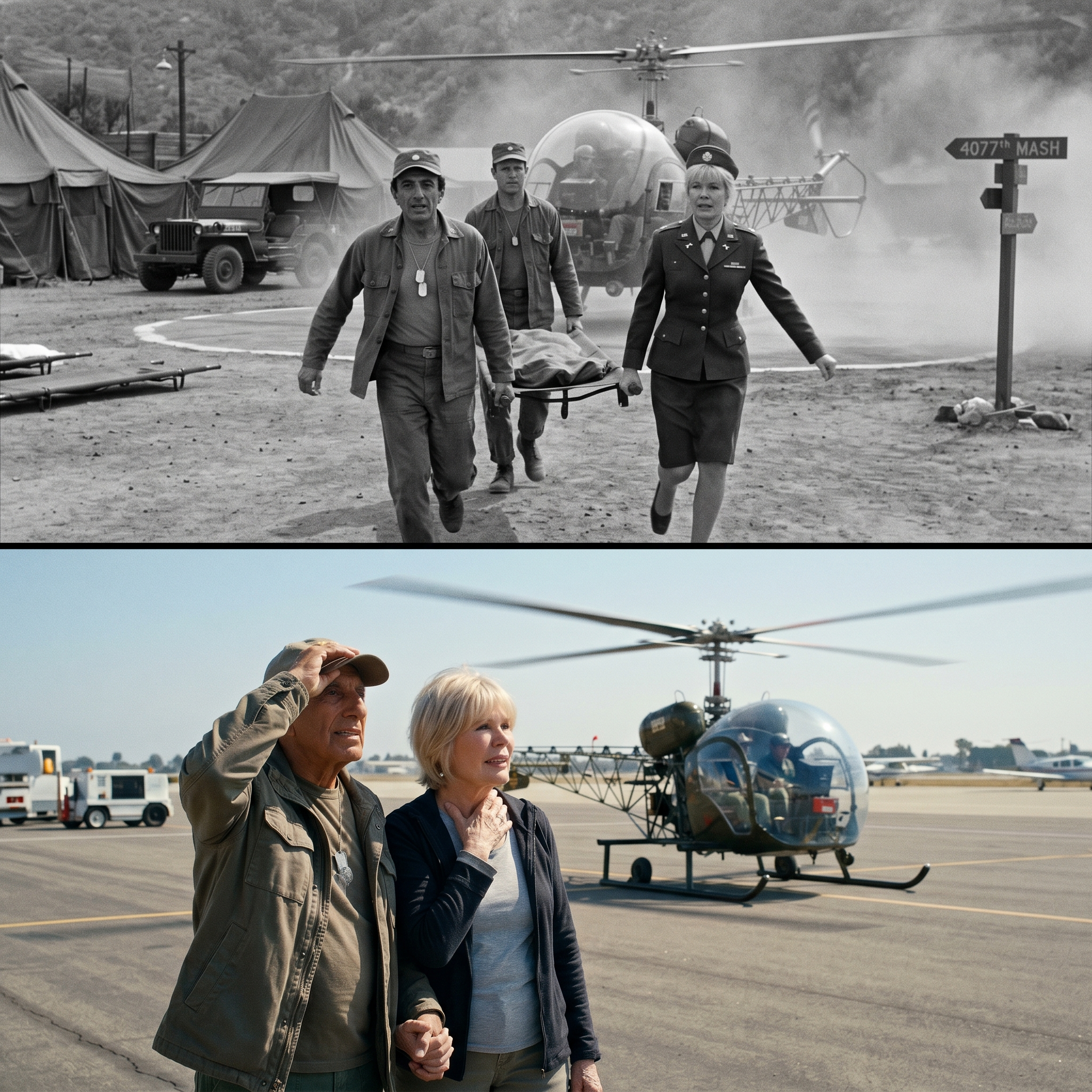 Jamie Farr adjusted his cap, squinting against the glare, while Loretta Swit stood beside him, her posture as sharp and commanding as it had been decades ago.