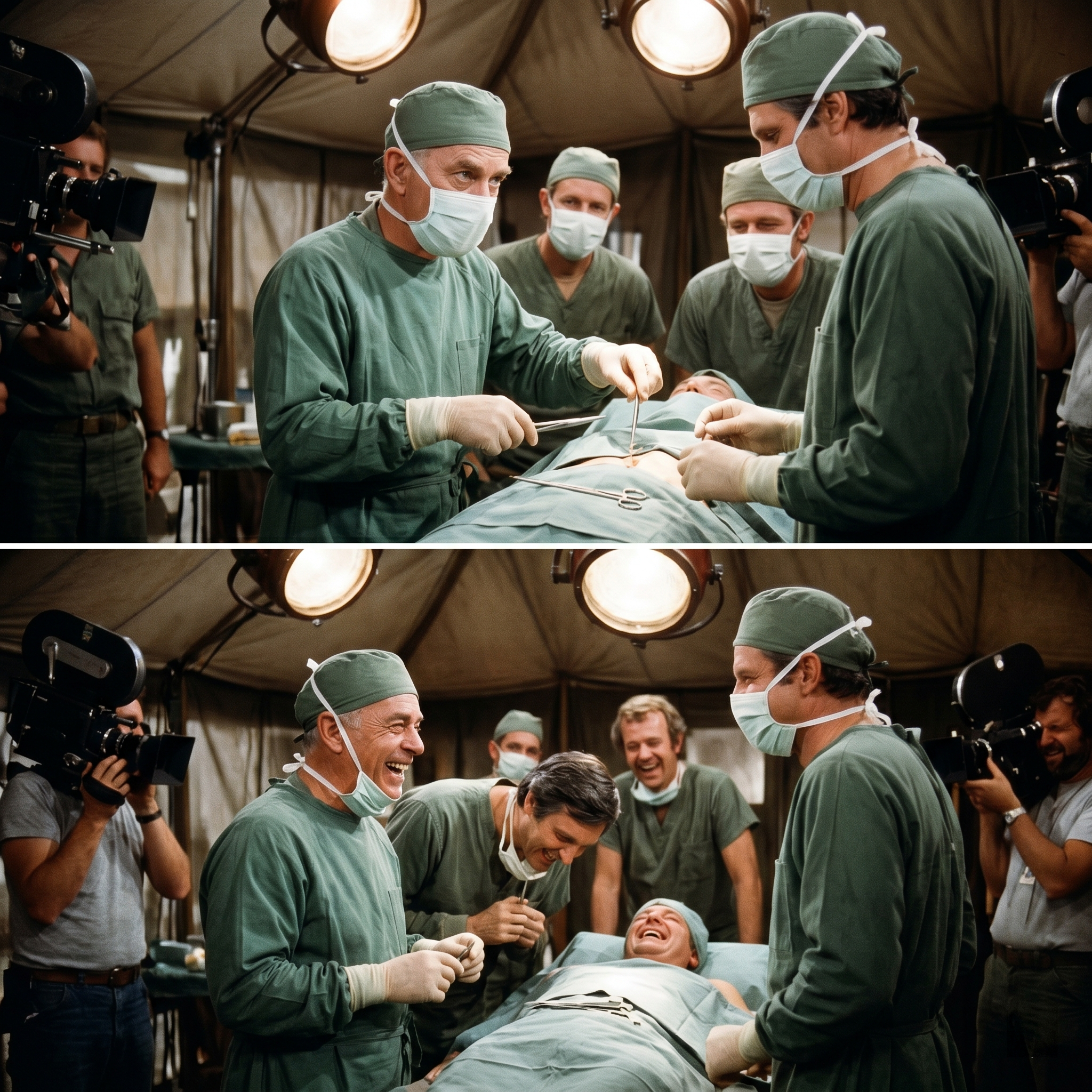 Mike Farrell was later quoted saying that it was the funniest twenty minutes of his entire life because the contrast was so high.